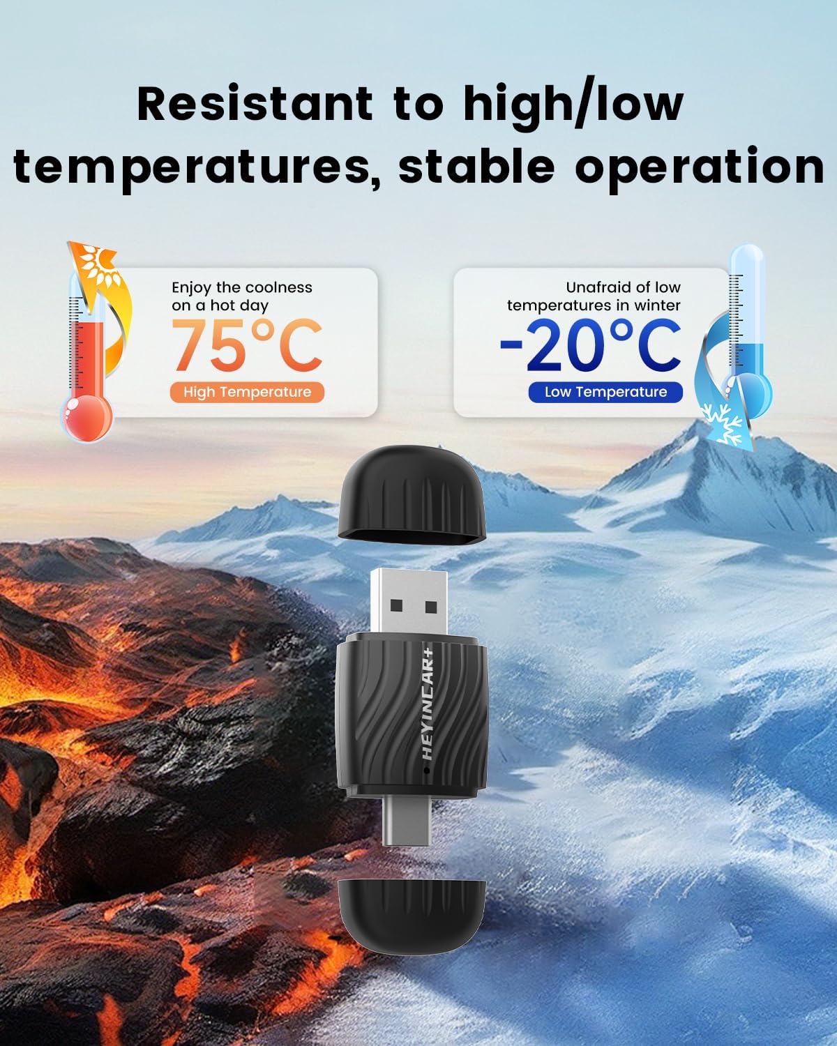 ⚡【SEAMLESS WIRELESS TRANSITION & NO ADAPTER CABLE REQUIRED】It requires no adapter cable; one end has a USB-A port, and the other end has a Type-C port.Transform your drive the moment you start your engine. The HEYINCAR+ H-Air2.0 instantly activates your wireless CarPlay or Android Auto, connecting your phone in typically 5-8 seconds. Imagine starting your morning commute: before you’ve even adjusted your mirror, your preferred navigation app and music playlist are live on your car’s screen. No plugs, no delays – just a smooth, automatic connection that integrates perfectly with your routine, making every departure effortless.