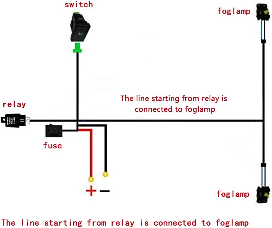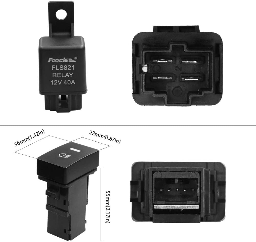 Package include : 1 x fog light wire harness kit (fog light is NOT included),1X DC 12V 40A 4 Pin Relay,1X Push Button Switch w/LED Background Indicator Lights(36mmX22mm) Size.