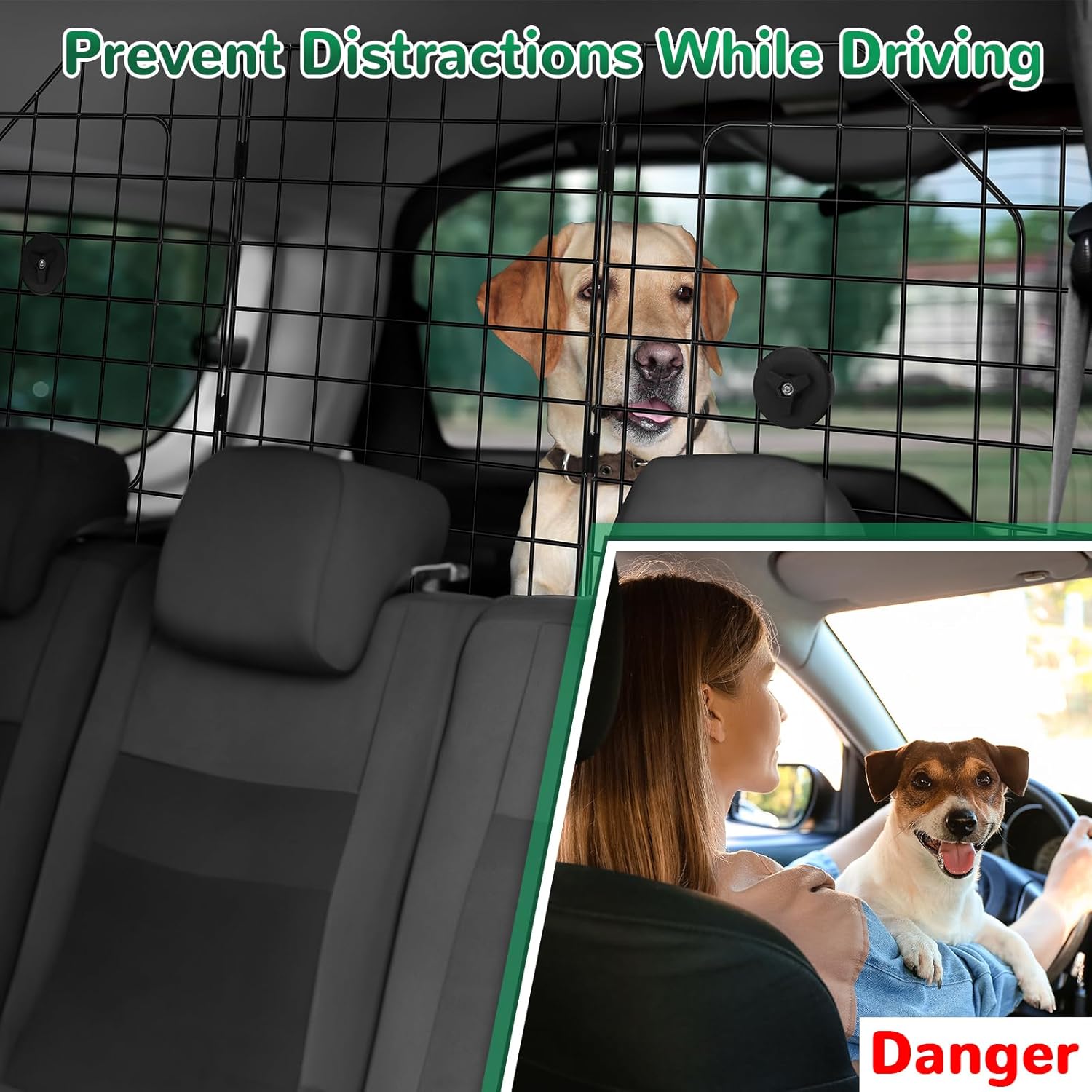 Heavy-Duty Steel Wire Construction : Dog divider for car strong steel mesh design,steel wire is width 0.1 inch , to have long-lasting strength & durability, The black finished smooth steel surface won’t scratch car interior or your pet.