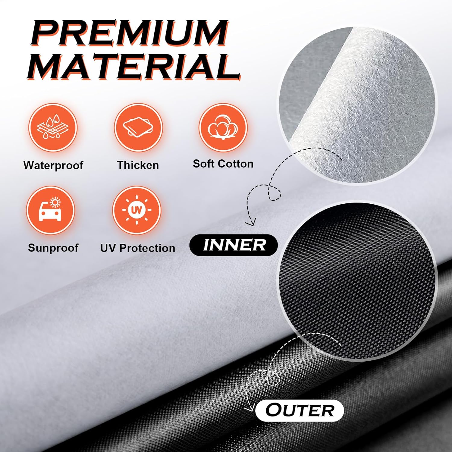 【All-Season Ultimate Protection】This versatile cover is your vehicle’s year-round bodyguard against nature’s elements. In spring, the heavy-duty fabric offers a layer of hail protection and guards against messy bird droppings or tree sap. During scorching summers, its UV-reflective surface keeps your cabin cool and prevents interior cracking. Come autumn, it stops falling leaves and debris from clogging your sunroof drains and wiper cowls. Whether it’s intense sun, wind, or rain, this cover ensures your car stays clean and protected in every season