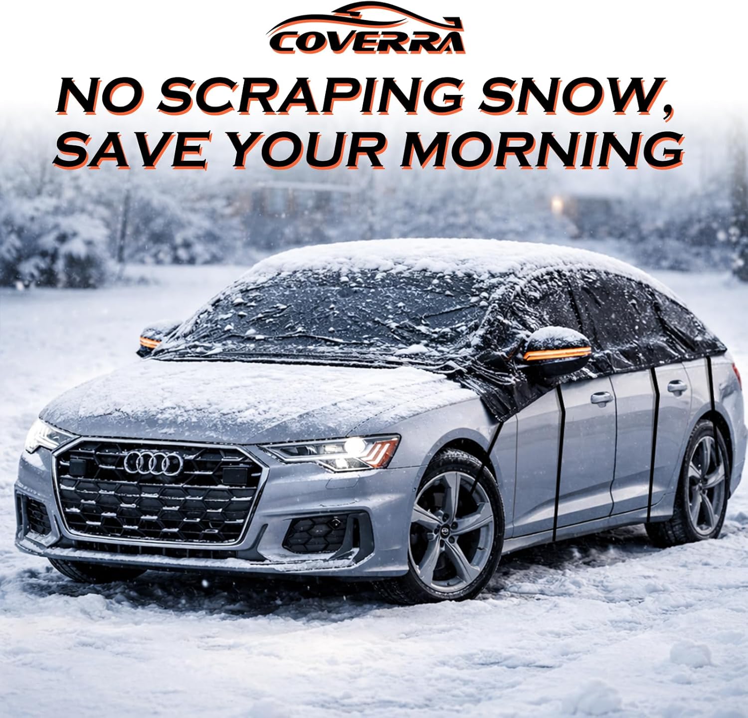 【Car Snow Remover】Clear Vision in Seconds Say goodbye to the back-breaking chore of scraping ice and shoveling snow in freezing temperatures. This premium car half cover provides 360° protection for your windshield, front side windows, and side mirrors, preventing frost, snow, and freezing rain buildup. By keeping your glass pristine and your wipers from freezing to the deck, it eliminates the risk of scratches from scrapers and saves you 15+ minutes on your morning commute. Simply peel it off and drive away with a crystal-clear, safe view of the road