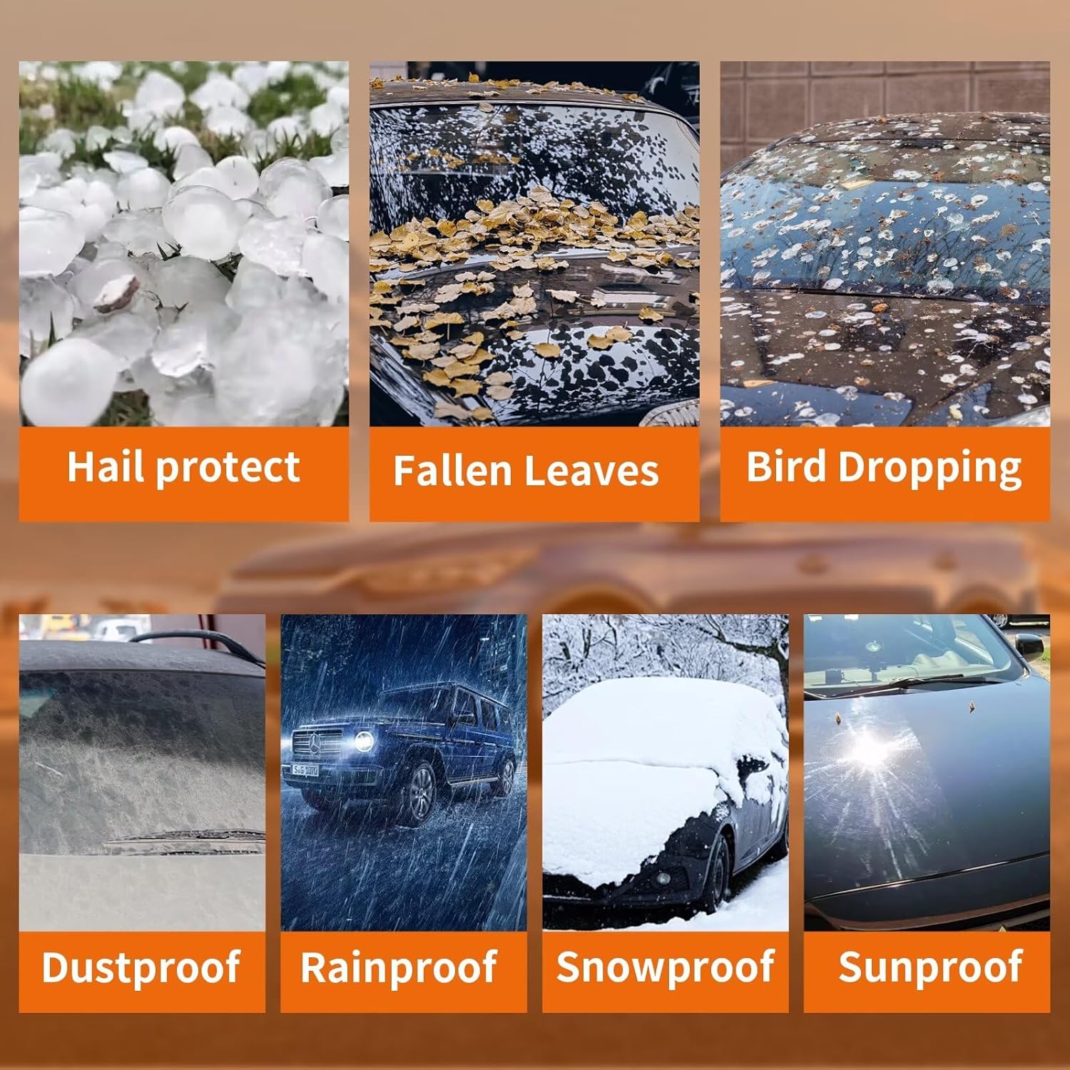 All-Season Protection: The AltoCover Half Car Cover Top is built for all seasons. In SPRING, it blocks pollen and rain. In SUMMER, the UV-resistant fabric reduces heat and sun damage. During AUTUMN, it prevents frost and falling leaves. In WINTER, it shields against ice, snow, and hail