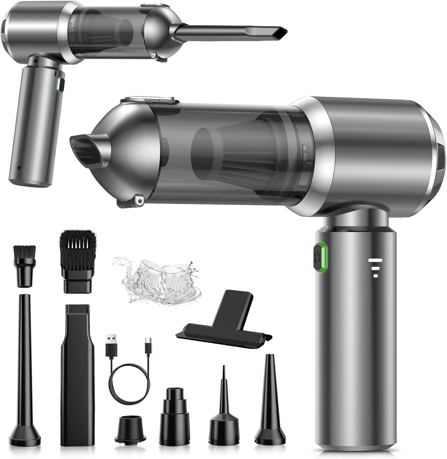 【Cordless Easy Cleaning】This mini vacuum cleaner is designed for your convenience and its lightweight, ultra-compact and rechargeable design makes it easy to carry for storage and use wherever you go. With up to 28000PA of suction power, it quickly removes dust, dirt and debris, leaving your car spotless. Three extra anti-static bristle heads are an effective option for removing pet hair, keeping your car fresh and clean