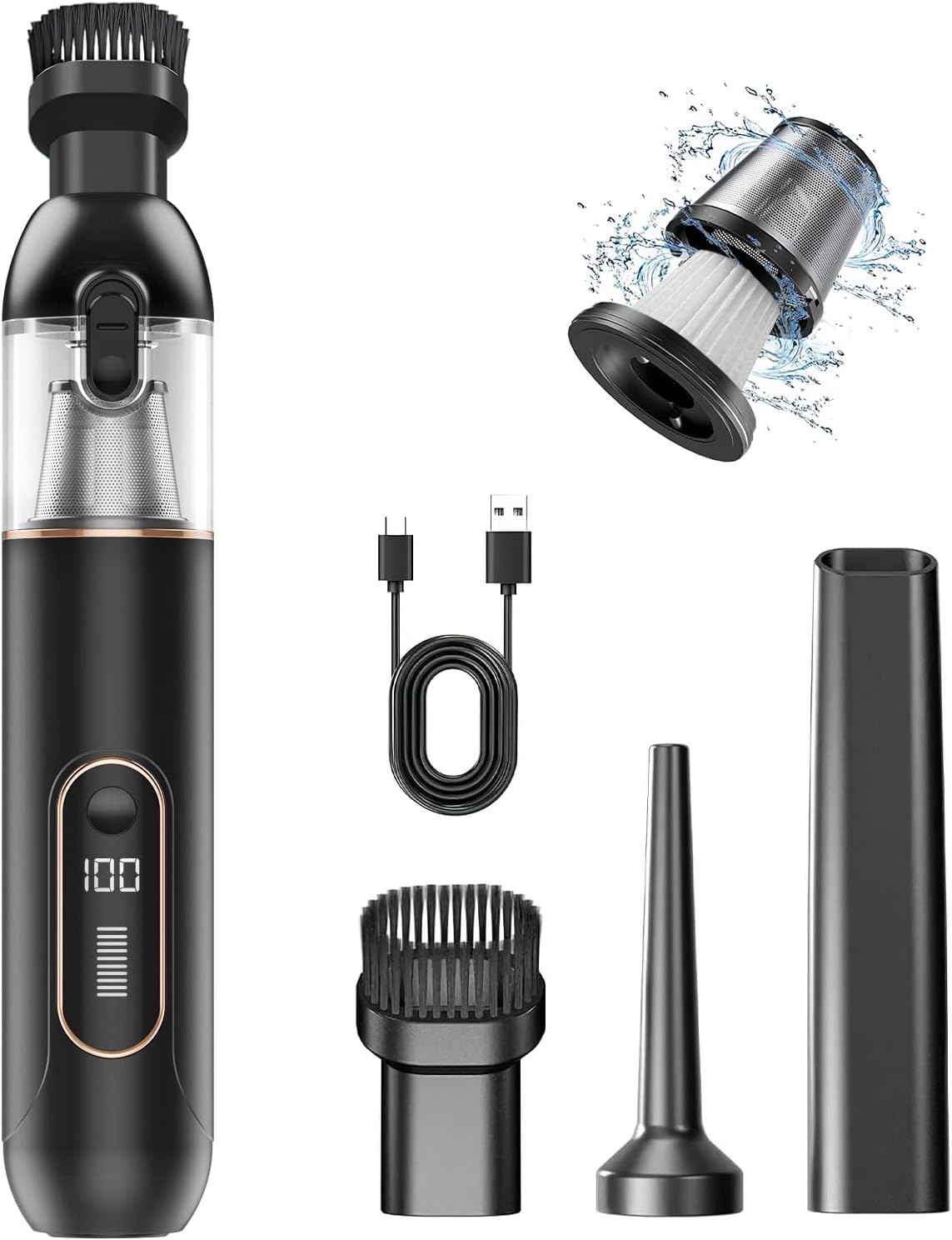 This little vacuum is awesome. I bought it mainly for my car, but I end up using it around the house too. The suction is way stronger than I expected—it easily picks up crumbs, dust, pet hair, and even dirt from floor mats.It’s cordless and lightweight, so it’s easy to grab and use without dealing with cords. Battery life is good, and it charges pretty fast. The attachments are actually useful, especially for tight spots between seats and along edges.It feels solid and well made, not cheap at all. For the size, the power is impressive. If you want a portable vacuum that actually works, this one is totally worth it. Would definitely buy again.