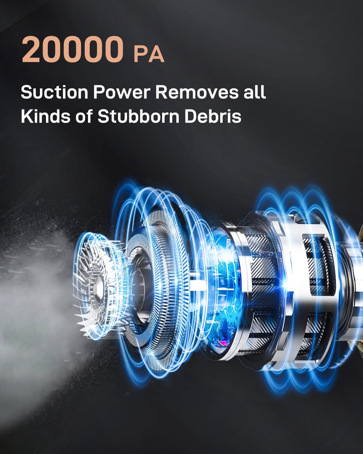【20000Pa Suction】: Car vacuum equipped with an upgraded brushless motor, this car vacuum portable cordless easily tackles car debris, pet hair, and carpet dust