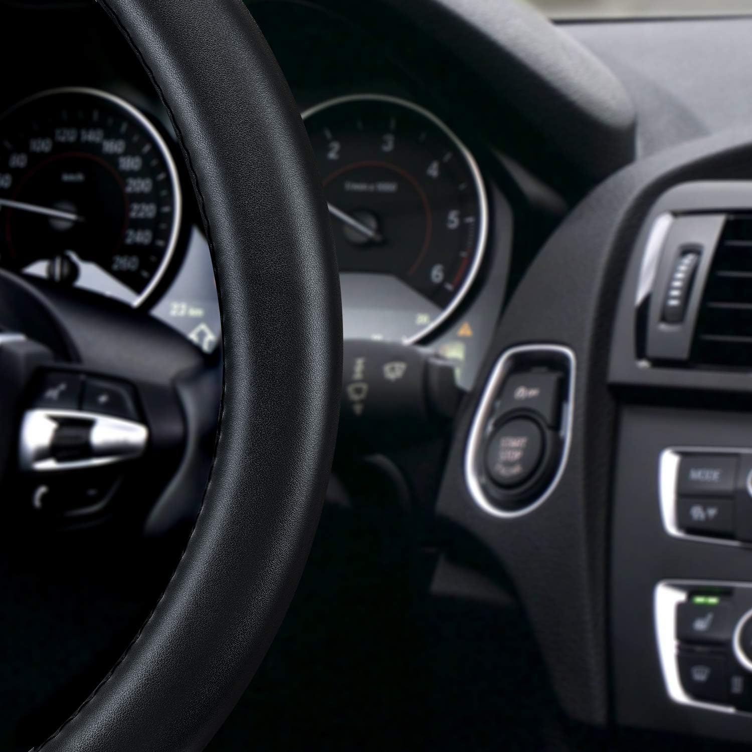 TOP QUALITY MATERIAL: Black leather steering wheel cover is made of pure cowhide, natural, smooth, stable. The entire steering wheel has only one interface!