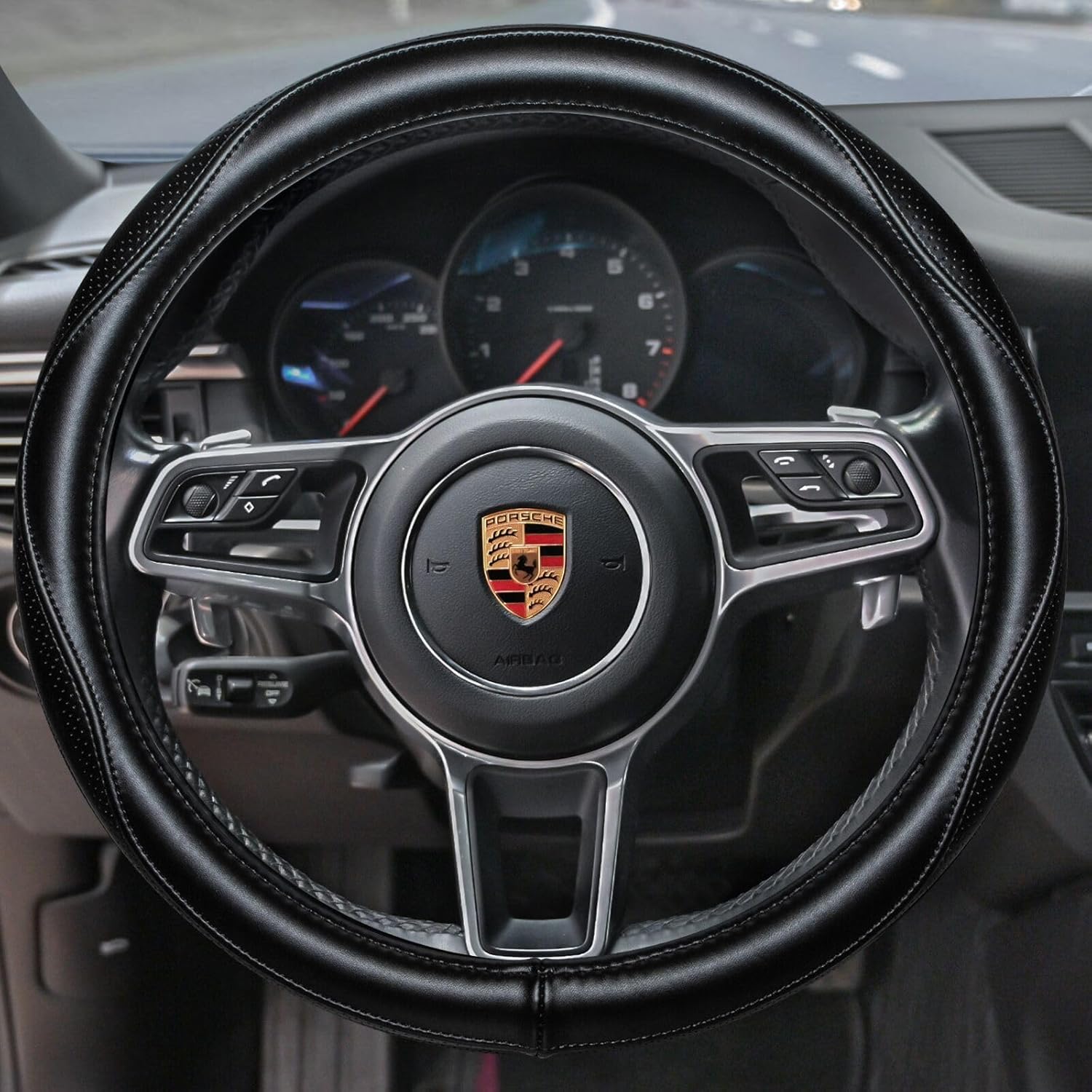 TOP QUALITY : This Heavy Duty car steering wheel cover is made of cowhide, natural, skidproof, stable. The entire steering wheel has only one interface!