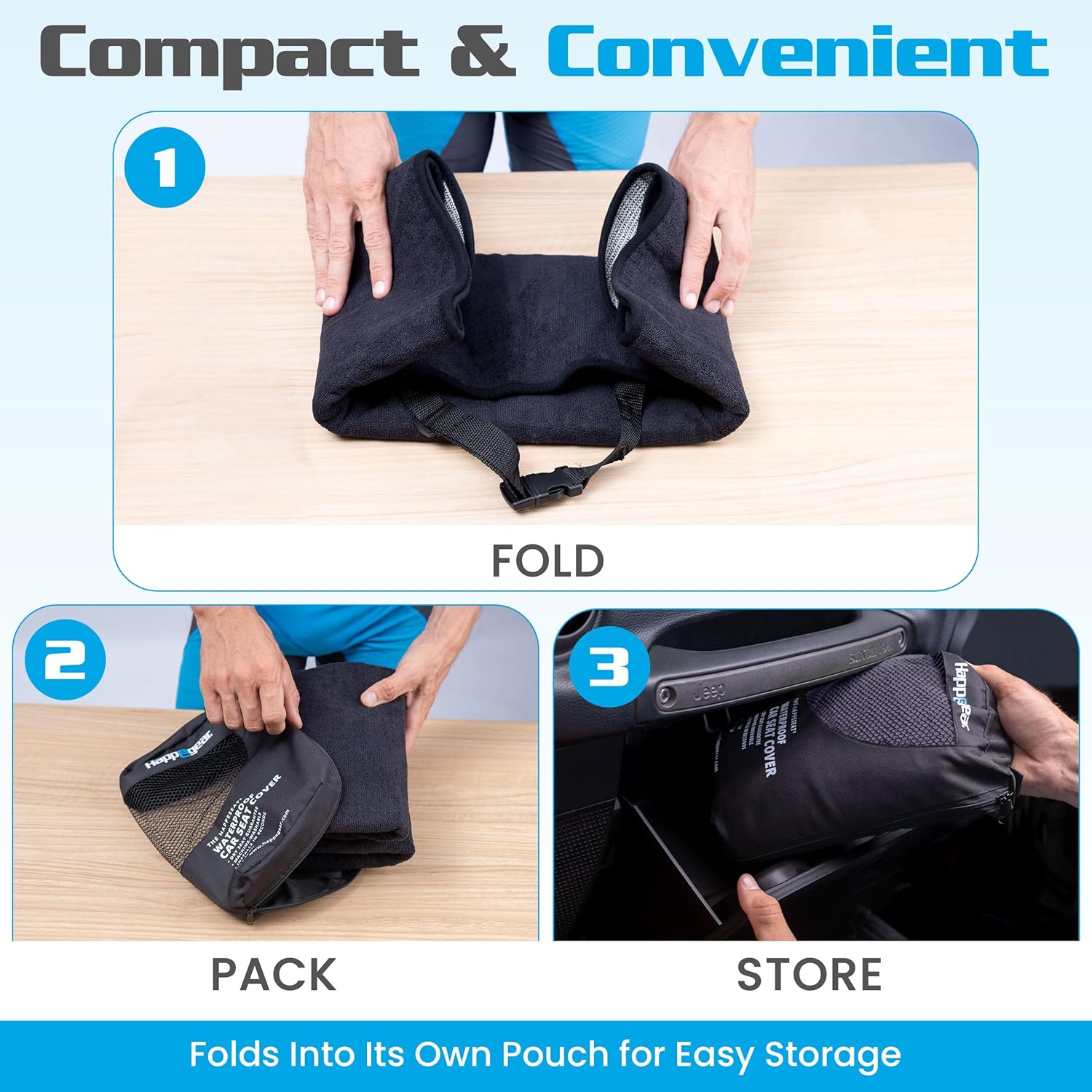 the happeseat seat cover is easy to fold and compact to store in your car