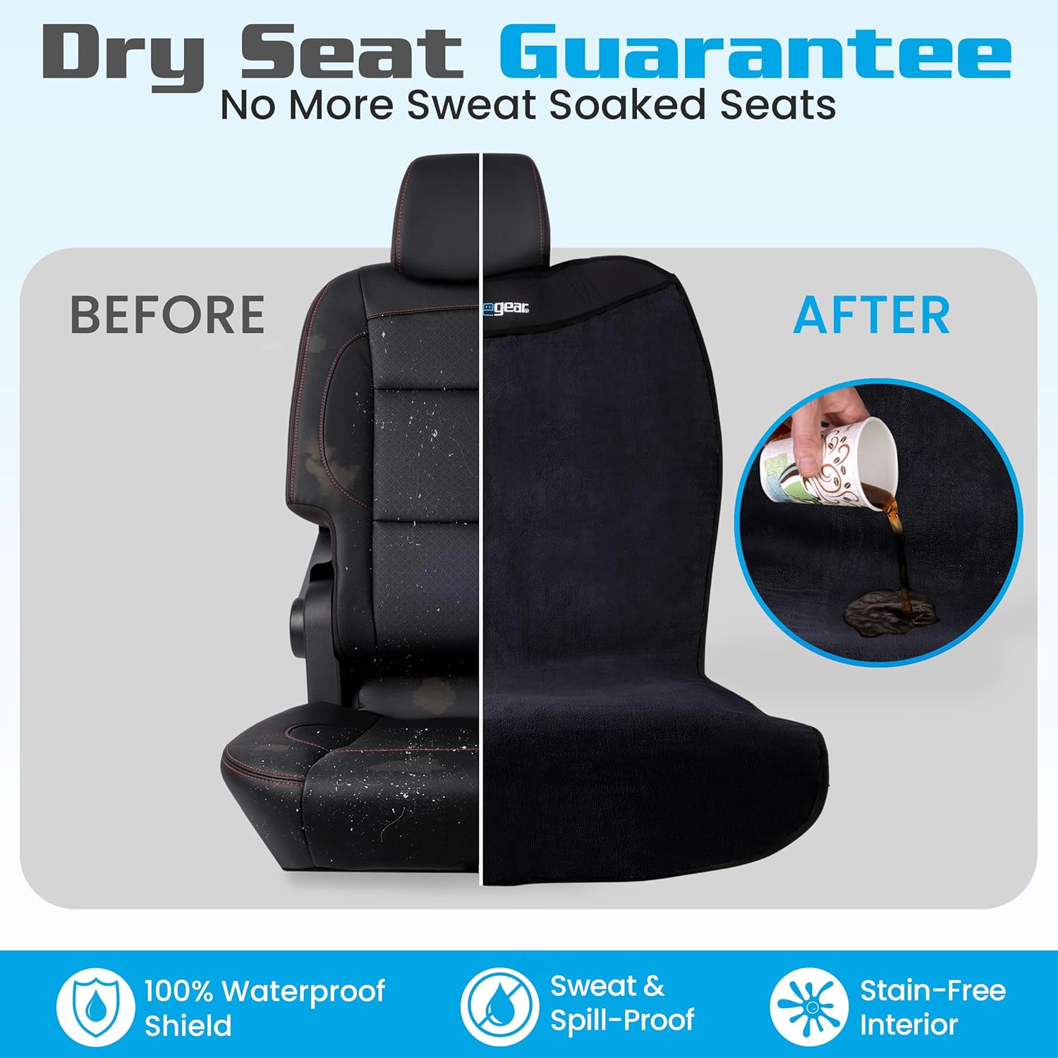 Waterproof Seat Protection – Keep your car seats dry and clean with our water proof car seat covers. Whether post-workout after the gym, driving kids or pets, or a day at the beach or park, this protector ensures no sweat, liquid, dirt or sand reach your seats.
