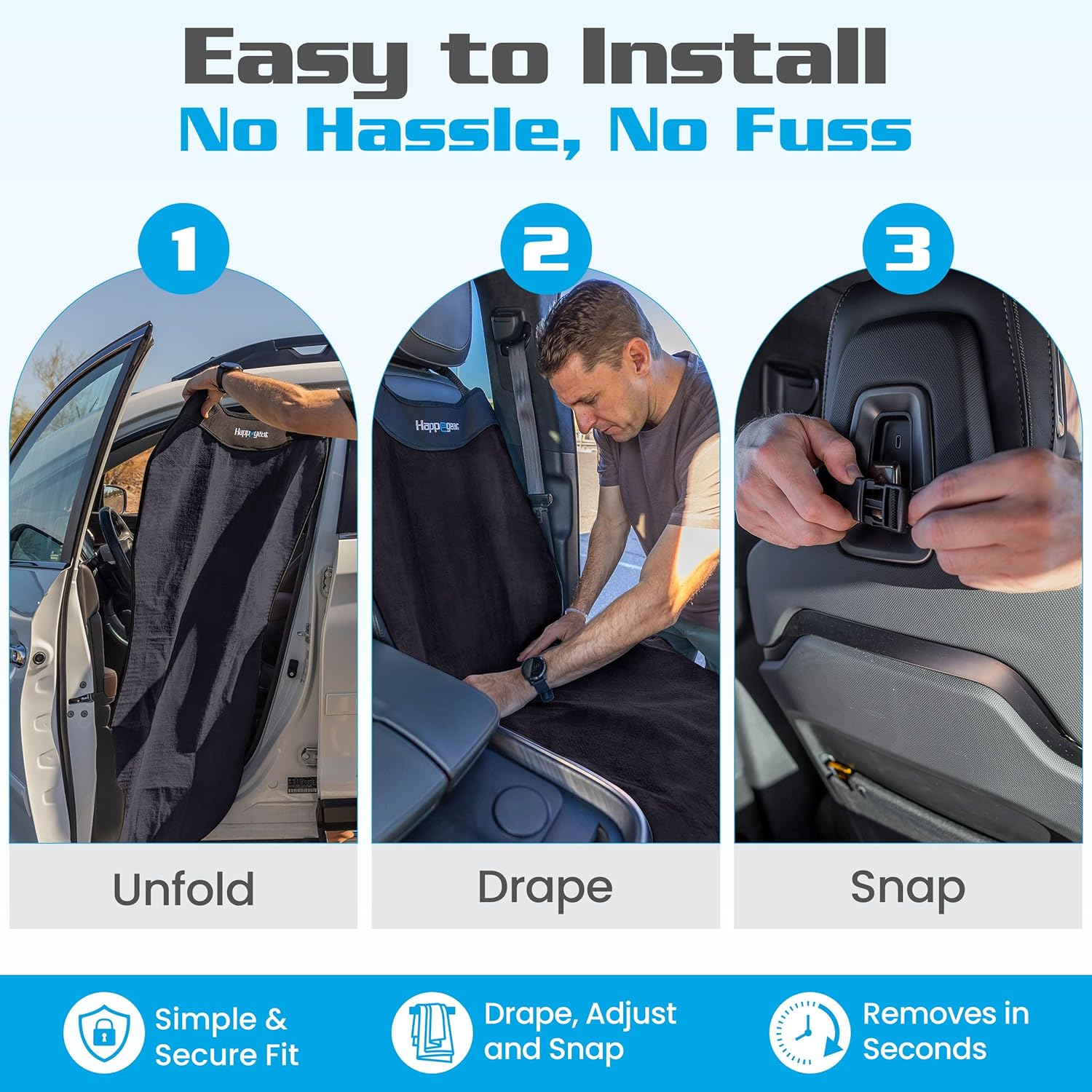 This Happegear Happeseat car seat cover is such a lifesaver. I use it after pickleball and the gym and it completely protects my seats from sweat or moisture. The material feels tough but comfortable, and secures around the headrest so it doesn’t slide off.I really like that it’s waterproof and machine washable. It’s super easy to take off, rinse, and hang dry. It fits my driver’s seat perfectly and still allows access to the seatbelt without bunching.