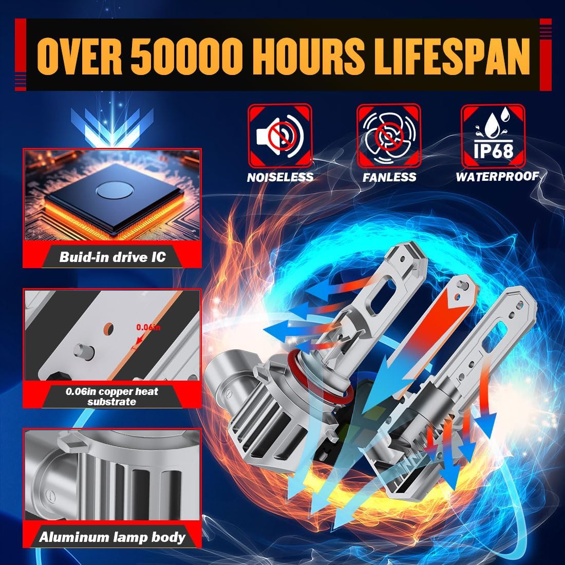 【Durable Design for Long-Lasting Performance】Built with high-quality aluminum and advanced heat dissipation technology, NOVCAPAR 9005 led light bulbs are designed for longevity, offering over 50,000 hours of reliable use. The fanless design ensures quiet operation, while the durable construction keeps your lights performing at their best, regardless of the weather conditions.