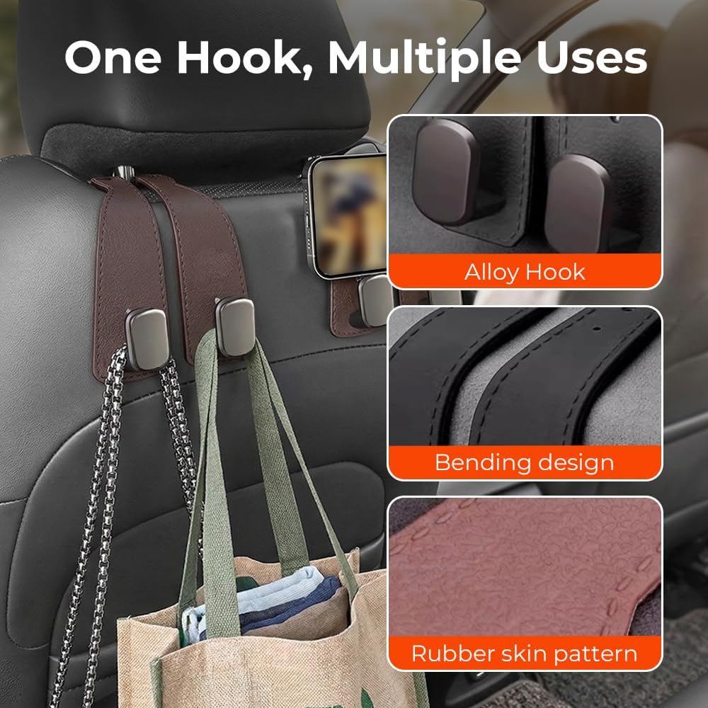 Compact & Lightweight for Everyday Use: Ideal for road trips, daily commutes, and errands, these car seat back storage hooks are designed for instant organization. Keep your headrest hooks for car handy for when you need a quick solution to manage your belongings on the go