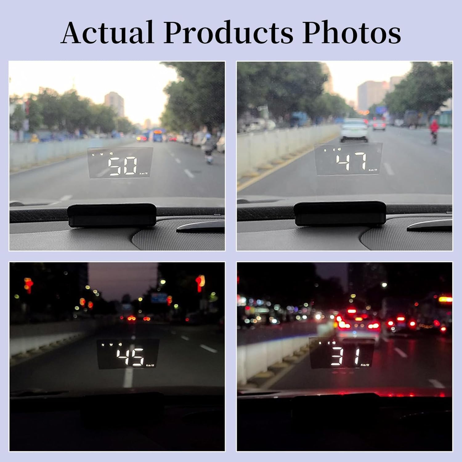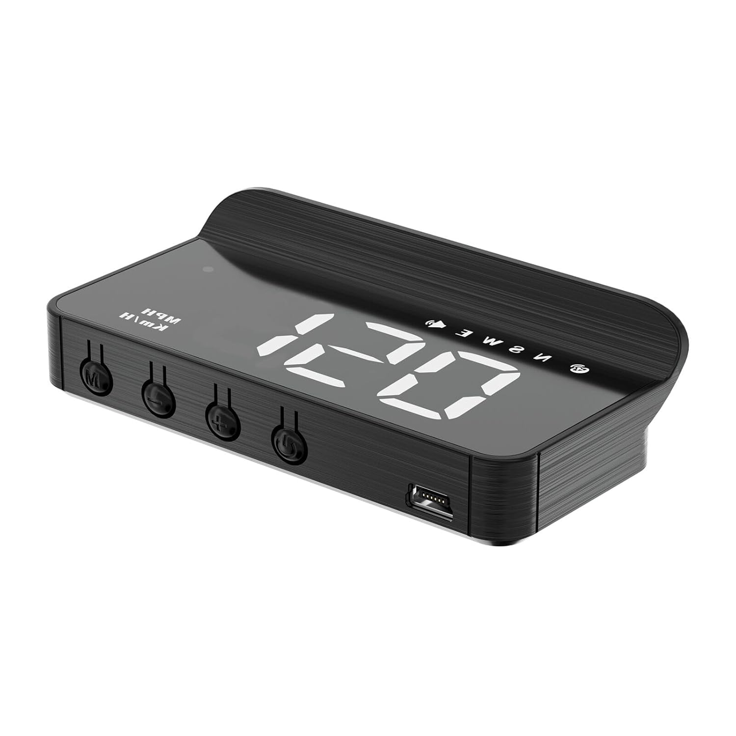 This is a good simple HUD unit that can display time, speed and compass direction using GPS. You just put it on your dashboard and let it reflect off the windshield. There is a film you can attach to the glass to make the reflection clearer. There are different display modes, letting you choose which elements are displayed.I’ve read that some people say that it is inaccurate. For me, the default settings made it display speed that was 10mph too fast past 50mph. I was able to adjust it so that it was within 1 or 2 mph from 0 to 65mph. Press and hold M to enter the menu. The first screen will show an adjustment value (I think default is 107 or something like that). Lower it to 102. Press and Hold M again to save and exit. That worked for me. The instructions are not very clear on that, but basically if it is showing too fast a speed compared to your speedometer, adjust that value downwards. If it is showing too low a speed, adjust it upwards.Limitations:1. It uses GPS, so it takes a moment to find the signal when you start the car.2. It uses GPS, so when you lose the signal (like in an underground parking) it will show 0mph.3. In bright sunlight, its projection can get washed out.4. If you wear polarized sunglasses, it may filter out the display as well.All in all, for the price, it’s a good unit if you don’t need anything fancy.