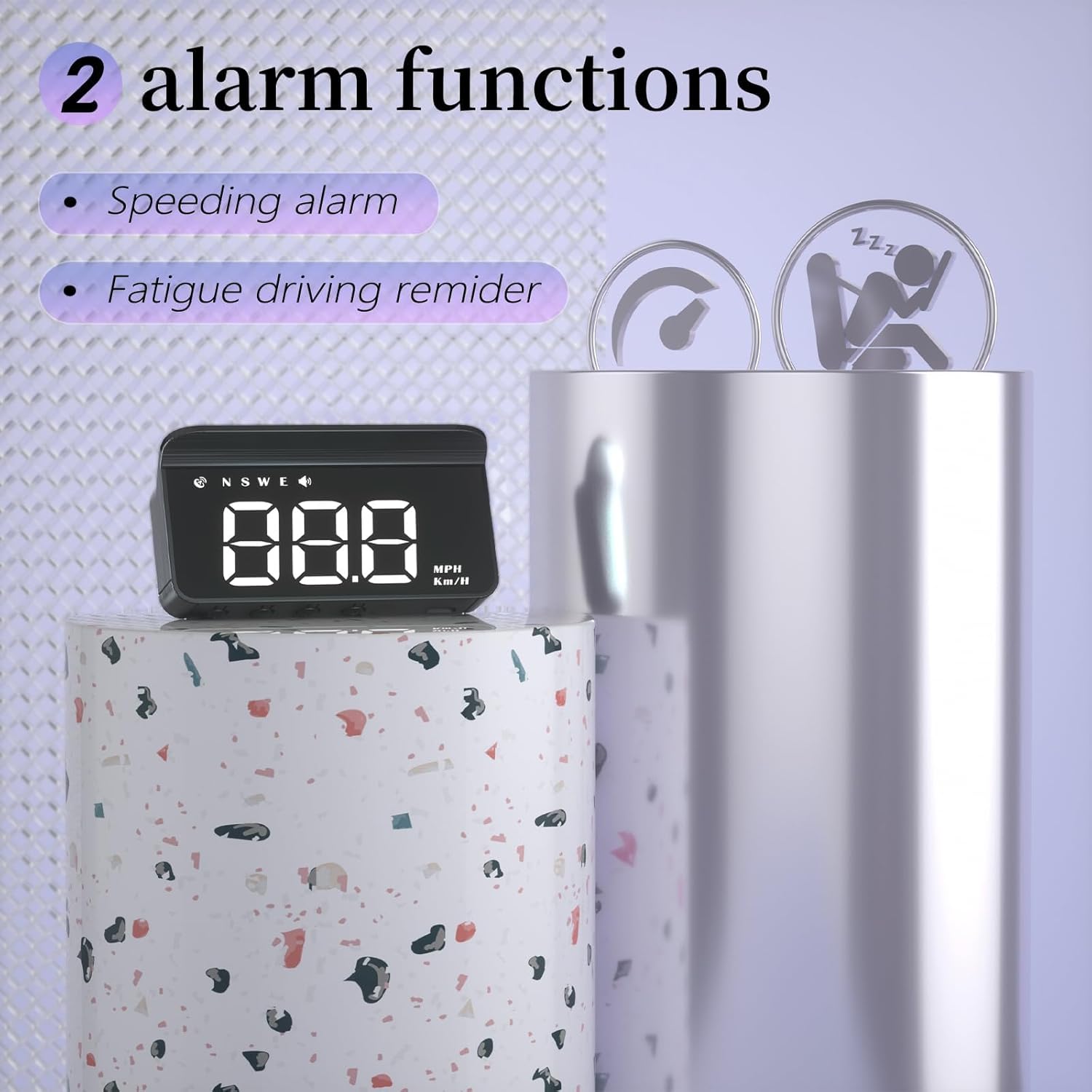 【Main functions】M1 heads up display can display the speed, GPS compass shows the direction, also can show the driving direction, also has a speeding alarm and fatigue warning function, the speed has MPH and KM/H two kinds of units, can be adjusted in the settings. When speeding or continuous driving time is too long, the product will beep to remind the driver, like a safety monitor, always remind the driver to pay attention to the safety of driving, placed in the car a mini M1 HUD will certainly add a lot of fun.