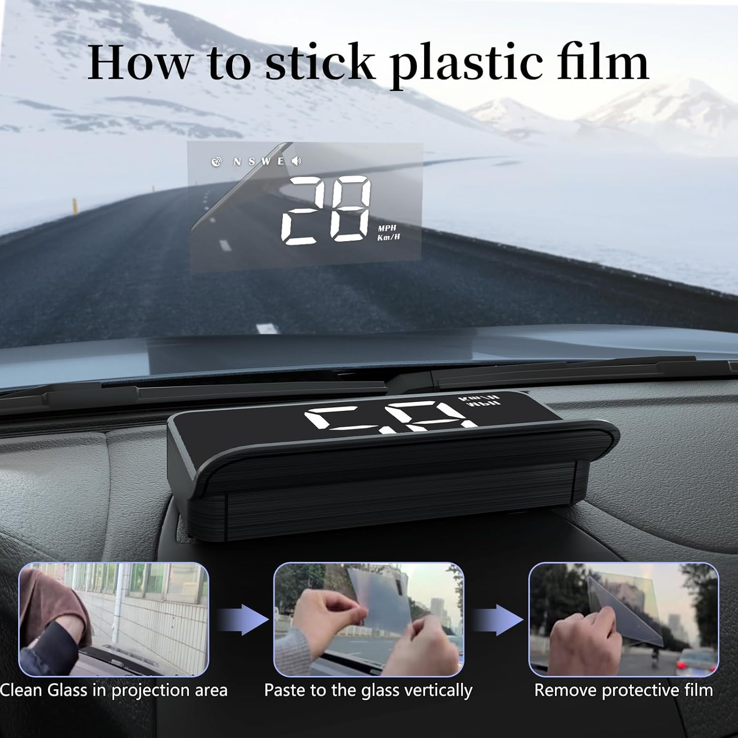 【Instructions for use】Our windshield speedometer projector is easy to install, plug and play, just use the usb cable included in the product to connect the car and the product, start the engine to power on and use. When you notice the small icon on the product flashing continuously, it means the product is collecting satellites, the speed will only be displayed when the device searches for satellites.