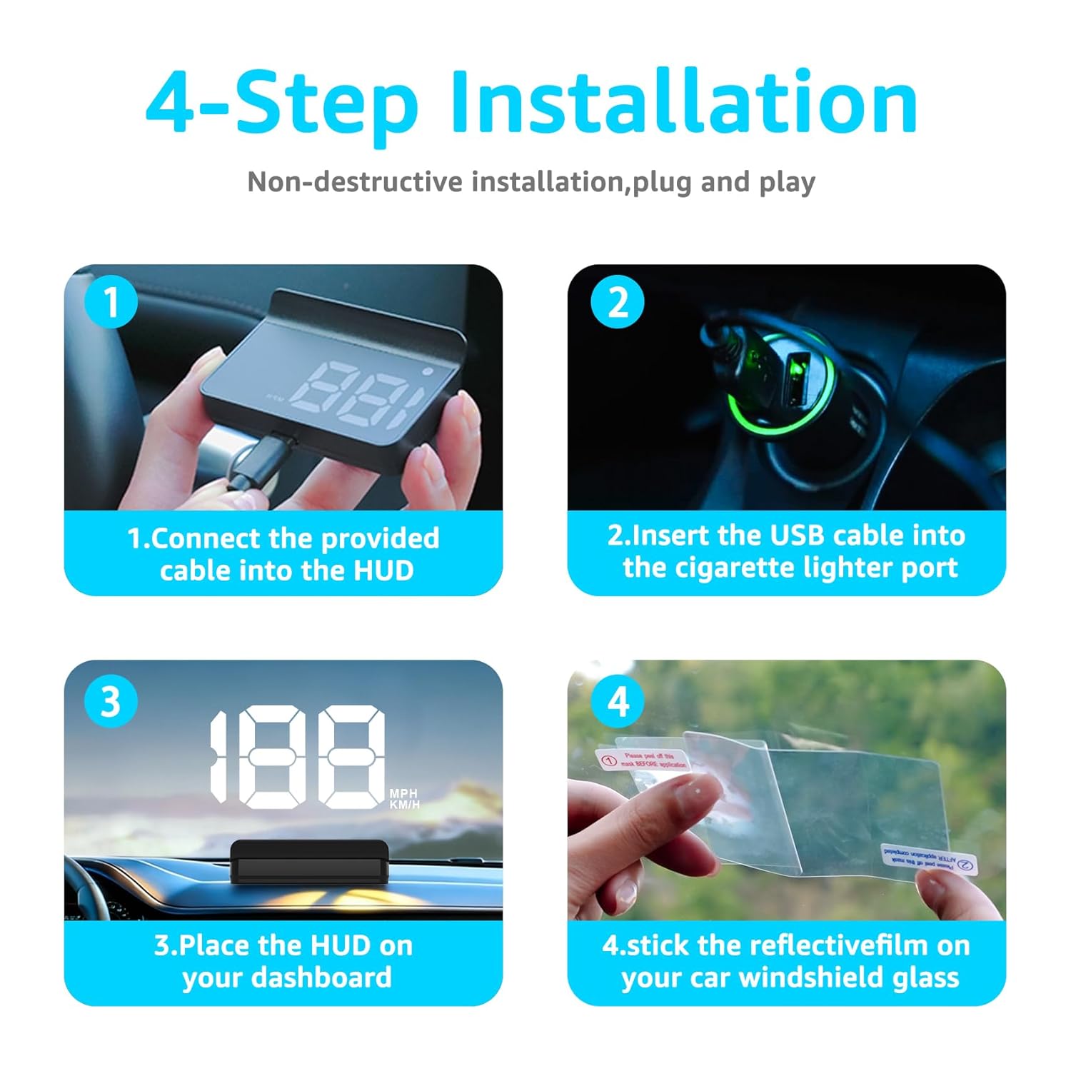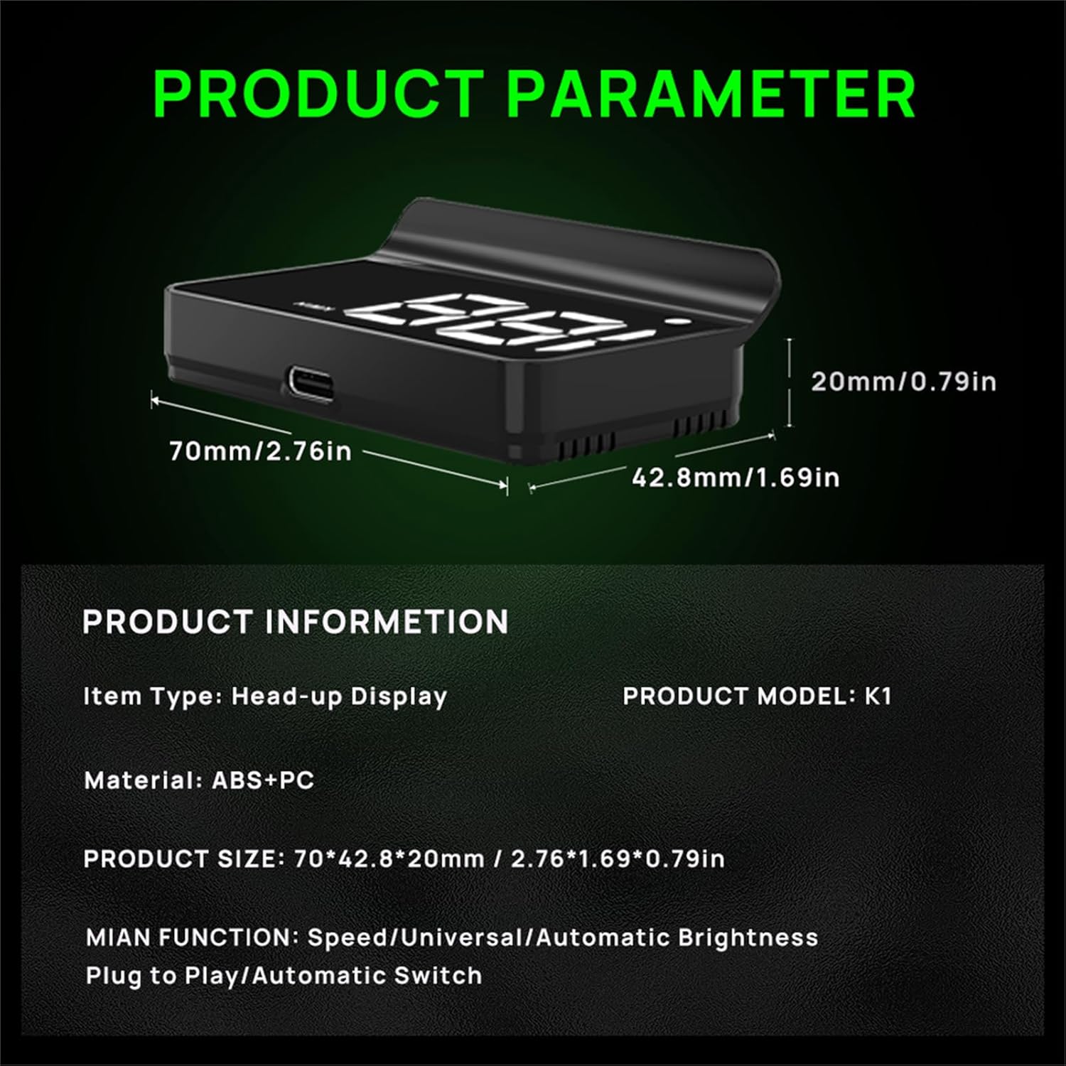 Clear Speed Projection Without Looking Down: Designed as a true heads up display for cars windshield, it projects speed directly into your line of sight, helping you stay focused on the road and drive more safely