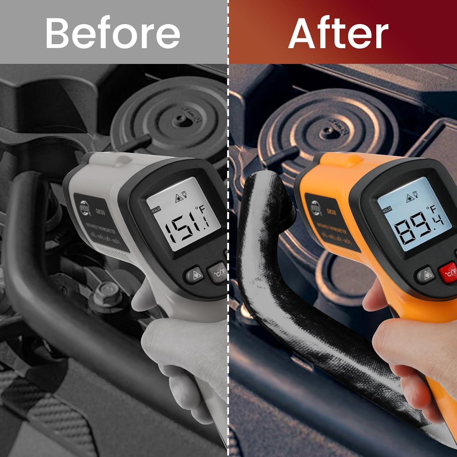 【Reflects 95% of Heat】This heat shield wrap withstands temperatures up to 1022℉(550℃) with a 95% reflective surface, effectively protecting painted surfaces and plastic components on automobiles and motorcycles, as well as kitchen refrigerators, and other surfaces from radiant heat damage