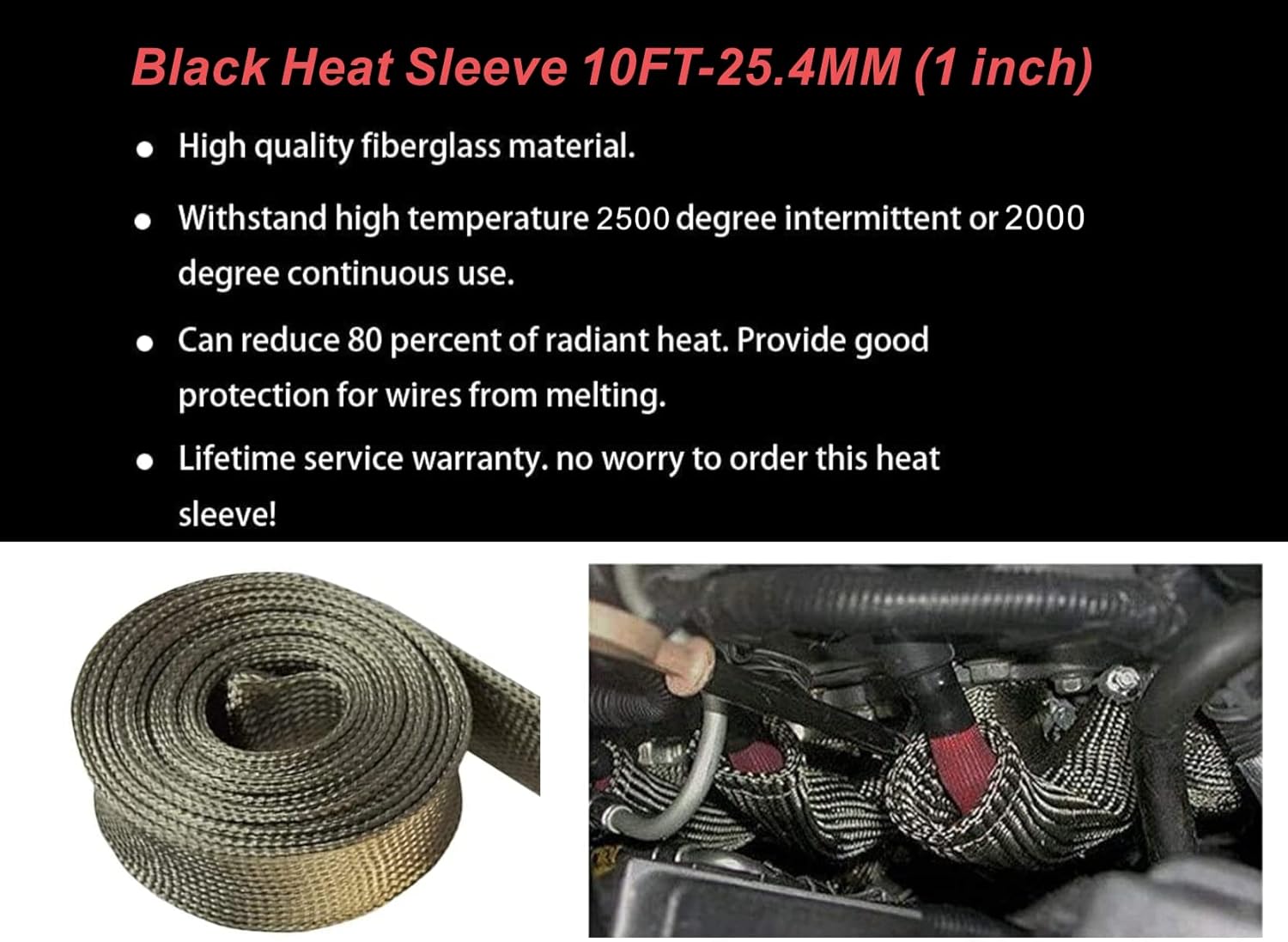 【 Materials】 :It is made with two layers of high temperature titanium material. The thick material is long enough to protect spark plug wires as it nears the header or exhaust manifold helping to increase longevity of wire and maintain maximize spark for as long as you keep your vehicle.It can withstand heat up to 2500 degrees intermittent.
