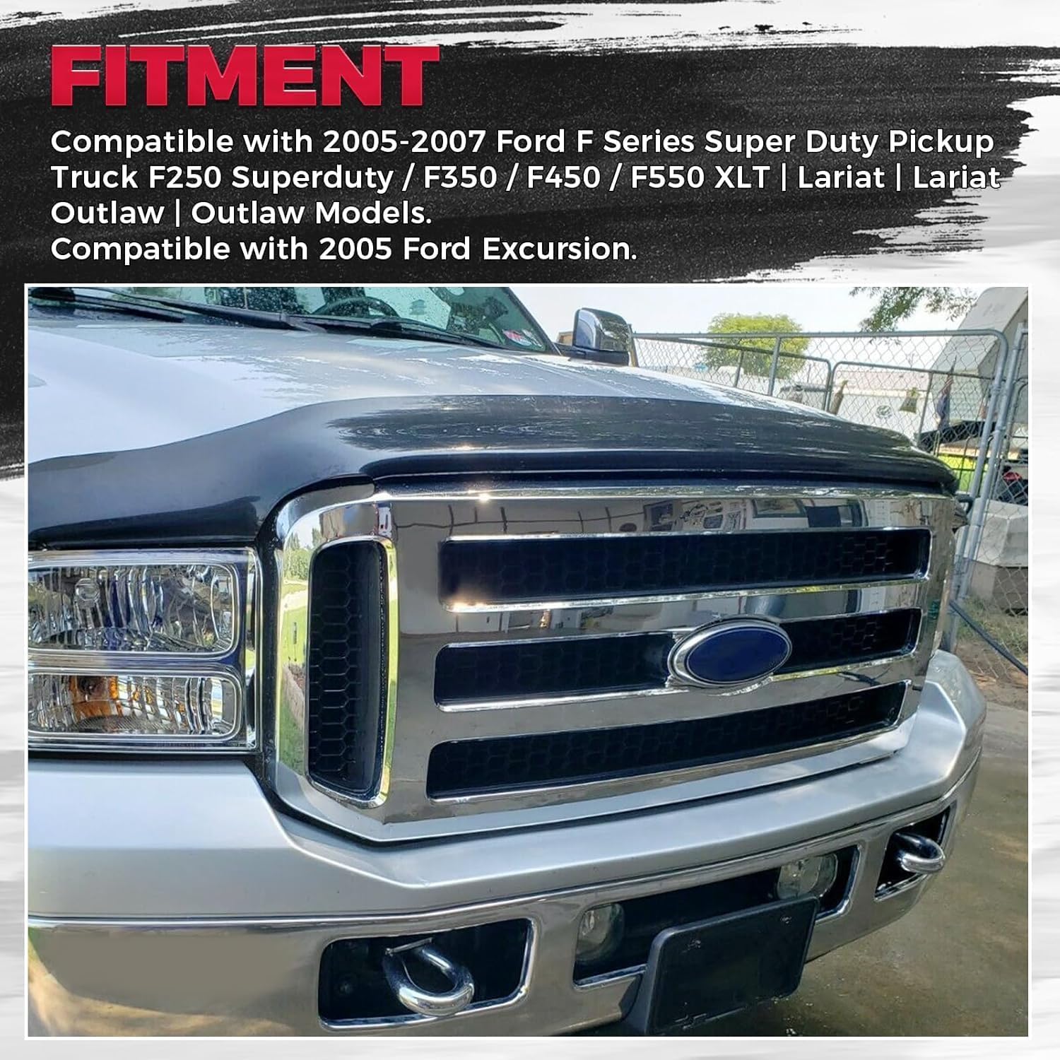 FITMENT: The front grille is compatible with 2005-2007 Ford F Series Super Duty Pickup Truck F250 Superduty / F350 / F450 / F550 XLT | Lariat | Lariat Outlaw | Outlaw Models. Compatible with 2005 Ford Excursion. Replacement for FO1200456 5C3Z8200BAA