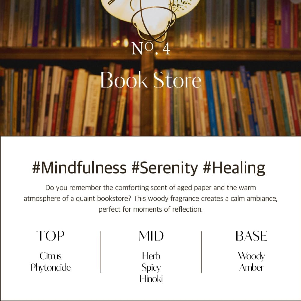[THE SCENT OF A QUIET BOOKSTORE MEMORY] The gentle scent of paper and wood lingers like time spent in a quiet bookstore, layered with hinoki, herbs, and warm amber for a calm and grounding mood.