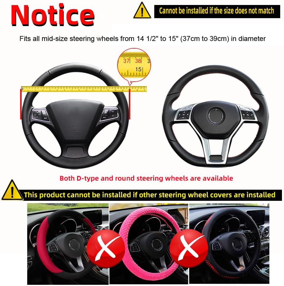 Universal Size: Our steering wheel cover is sized to the outer diameter of 14.5-15 inches (Approximately 37-38 cm). It’s suitable for the middle-size car steering wheel. Please measure the diameter of your steering wheel before purchasing.