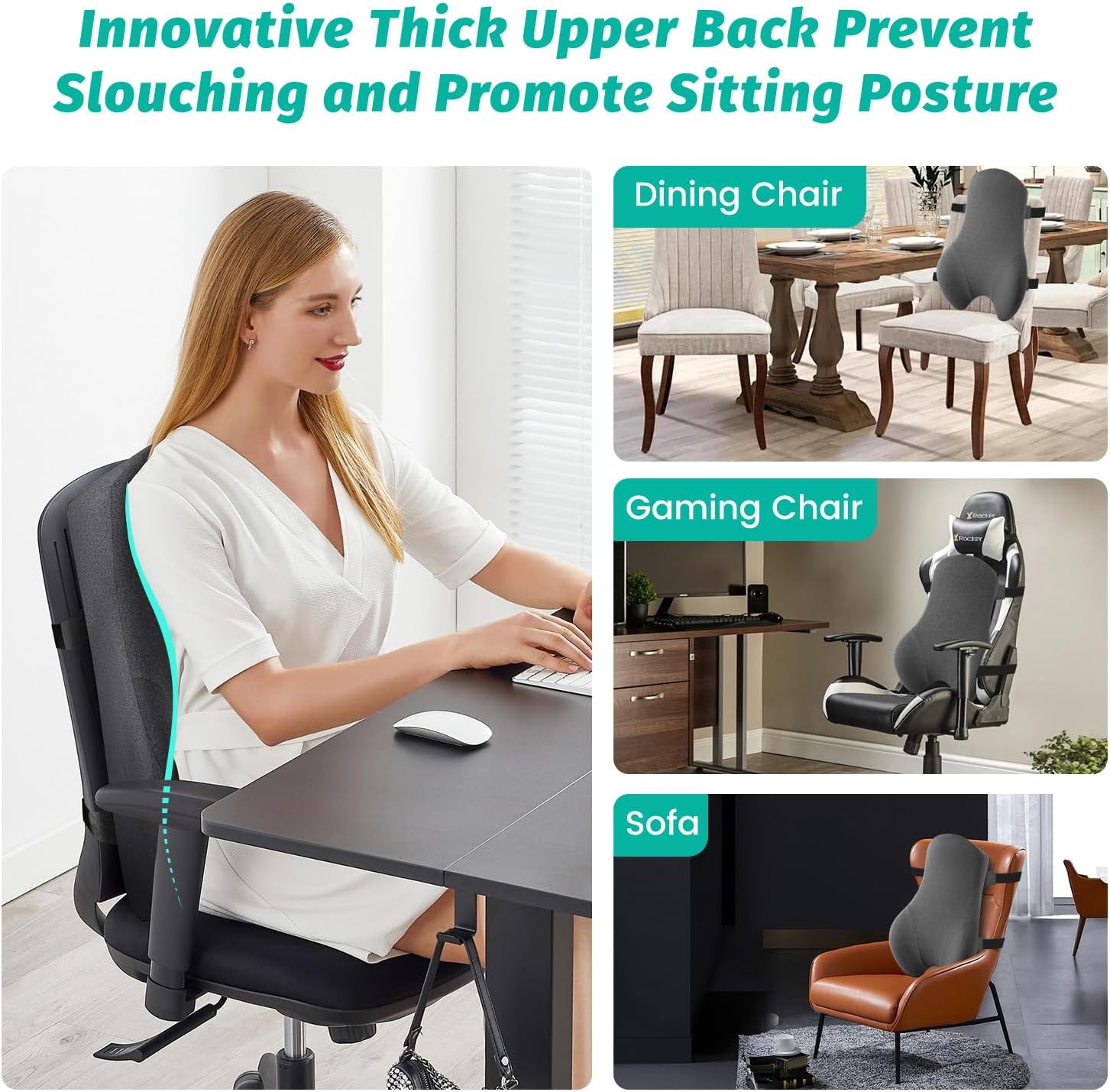 Ergonomic Upper Back Support: Thick, extended cushion provides strong shoulder and upper back support that regular lumbar pillows miss, helping correct slouching and maintain proper posture during long sitting sessions