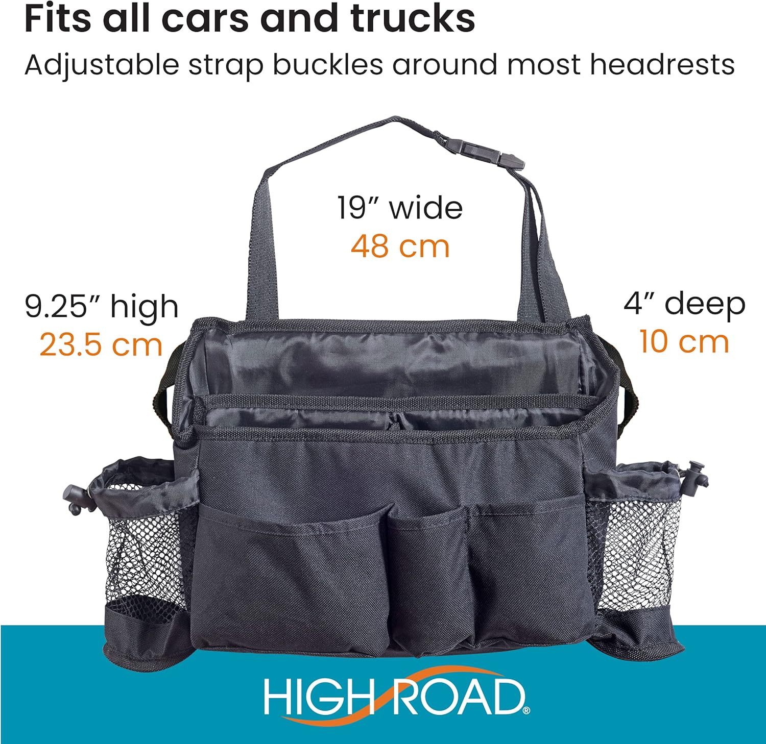 ADJUSTABLE STRAPS BUCKLE AROUND ANY HEADREST – heavy-duty straps adjust longer or shorter to position on the seat for best reach