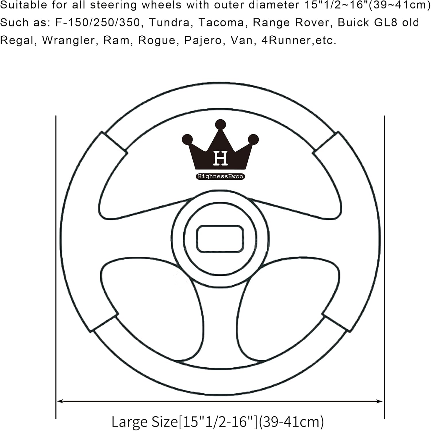 ♛【Universal Fit】- Suitable for all large size steering wheels with outer diameter 15.2-16″(38.6-40.5cm). Compatible for F-150/250/350, Tundra, Tacoma, Range Rover, Buick GL8 old Regal, Wrangler, Ram, Rogue, Pajero, Van, Toyota 4Runner etc.