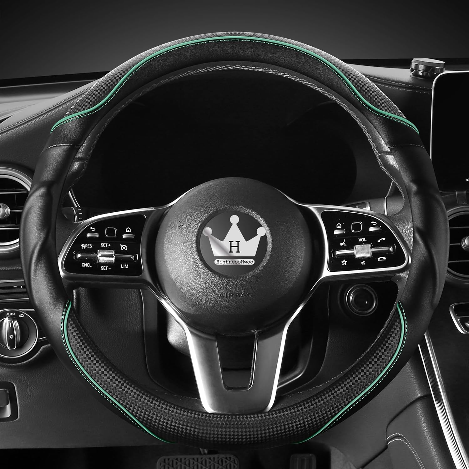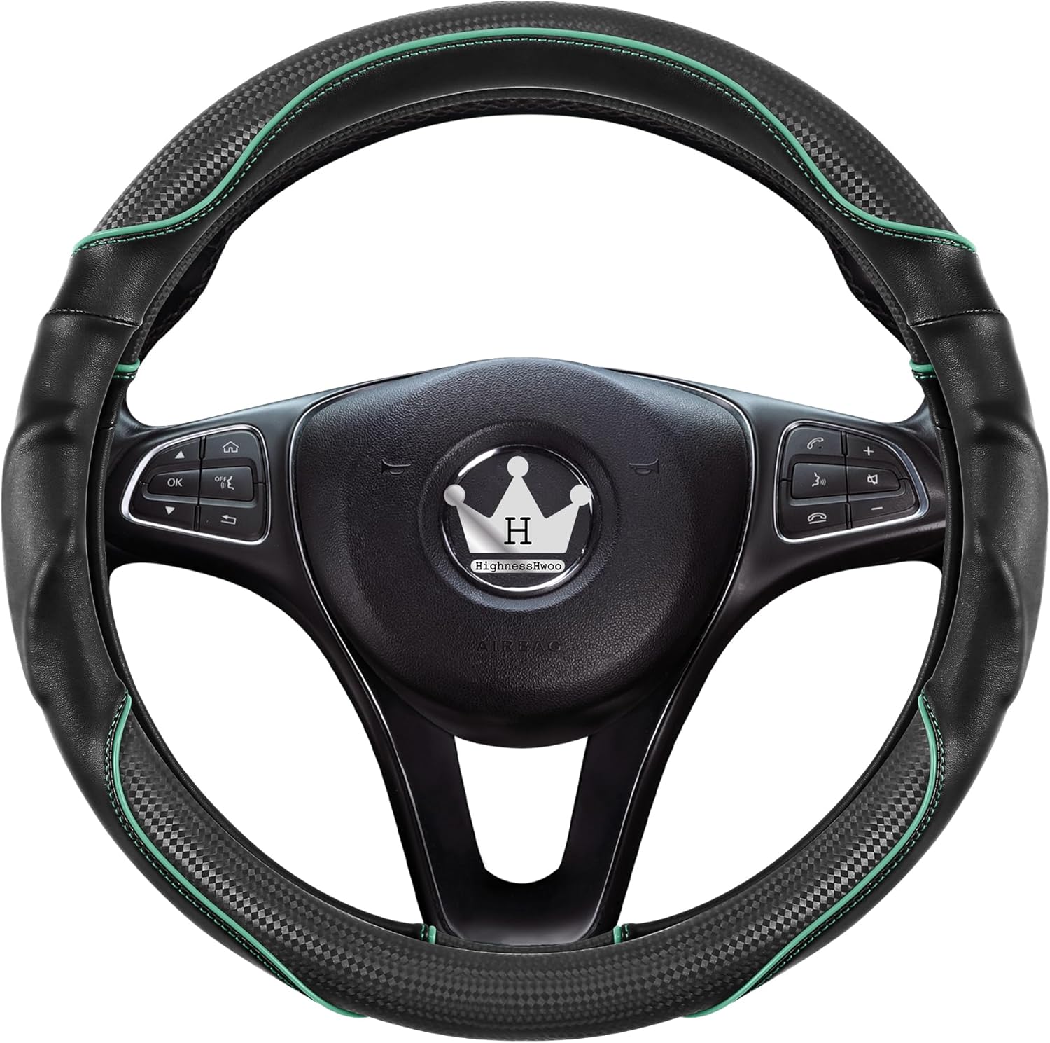 ♛【Premium Durable Materials】- Selected high-quality delicate soft microfiber leather & carbon fiber faux leatherr, skin-friendly & super soft luxurious touching. Eco-friendly & healthy. Our HighnessHwoo 3D car steering wheel cover offer the perfect balance of softness, strength, and anti-slip properties. Enjoy long-lasting performance that enhances driving comfort and control.
