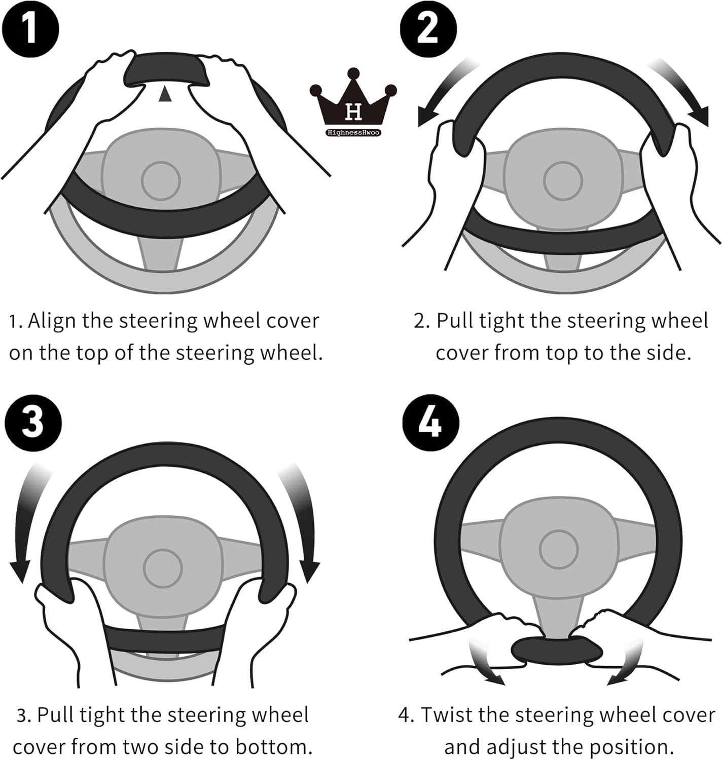 ♛【Easy To Install】- Durable & easy to install, just align the cover on the top of the steering wheel, then pull tight the cover from top to the side, then two side to bottom. Twist the cover and adjust it.
