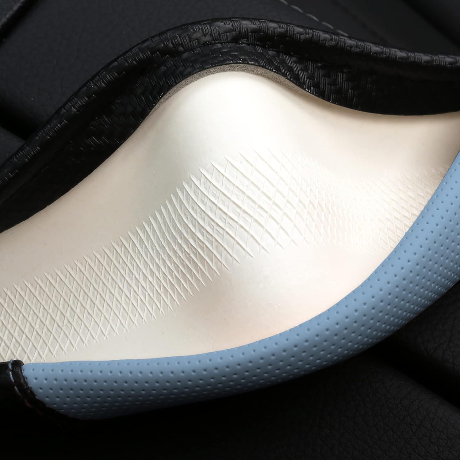 ♛【Carbon Fiber PU Leather】- Selected high-quality carbon fiber PU leather fabric, delicate texture, clear texture, Skin-friendly soft luxurious touching. Environmentally-friendly & healthy. Non-slipping, wear & dirt-resistant, no slippage while driving.