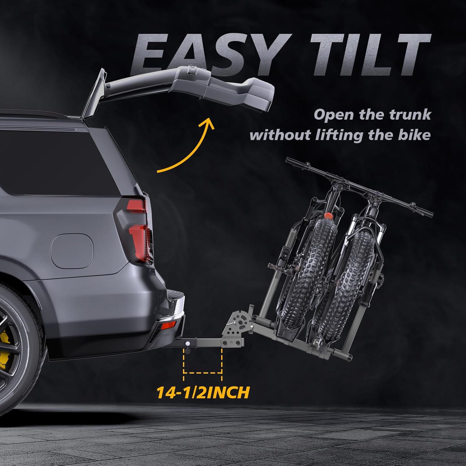 【Compact and Easy to Use】: Not using it right now? No problem — the rack folds up in seconds to save space when it’s not in use. And if you need access to your trunk, the quick-tilt function makes it easy to swing the rack out of the way, so you don’t have to remove it every time you need something from your car.