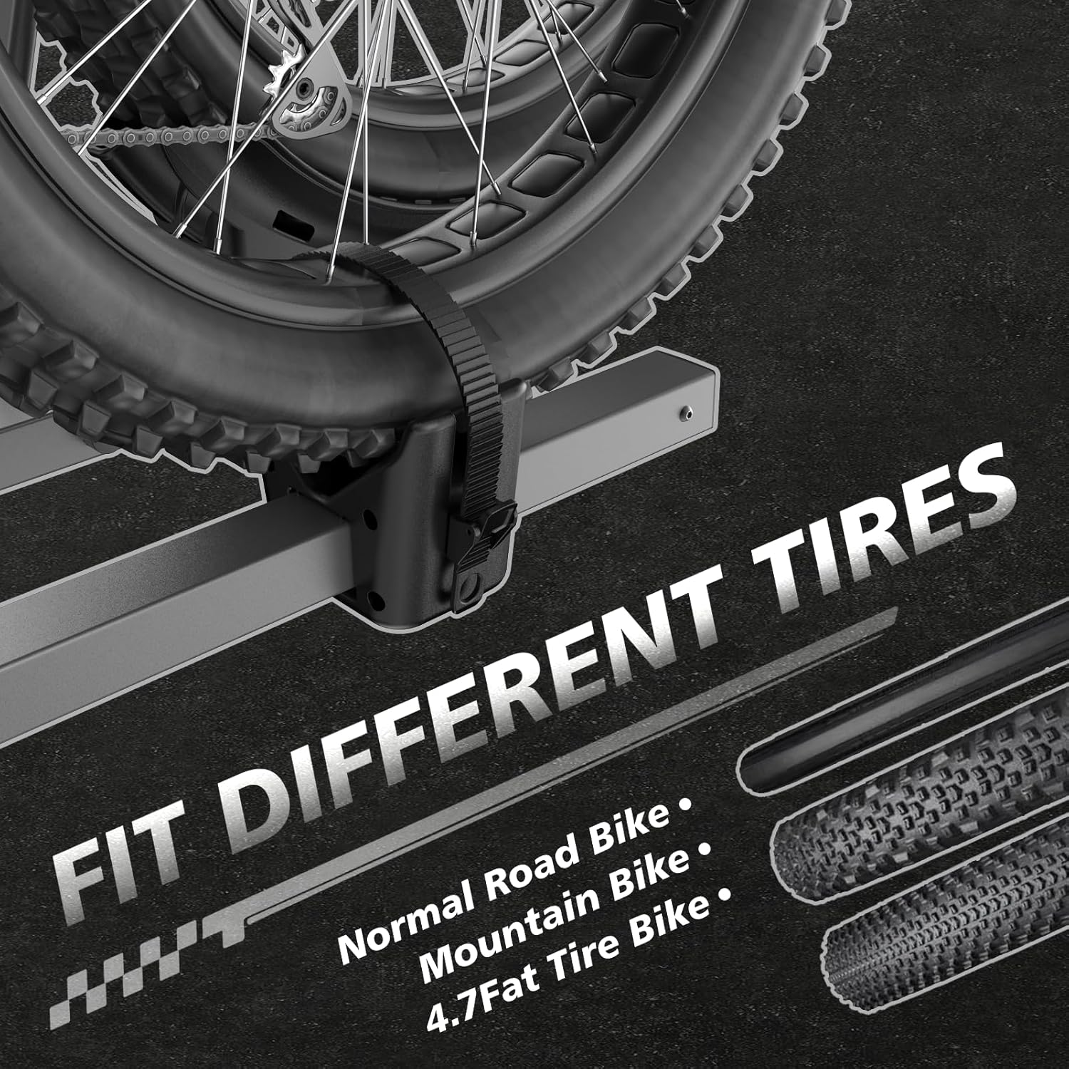 160lbs Load CapacityFat Tire Bike Rack, E-Bike Rack2″ Square Receiver, Foldable, Lockable