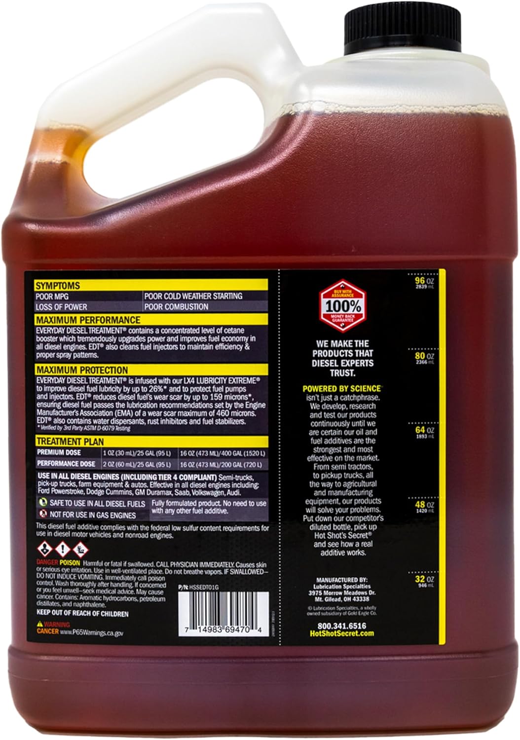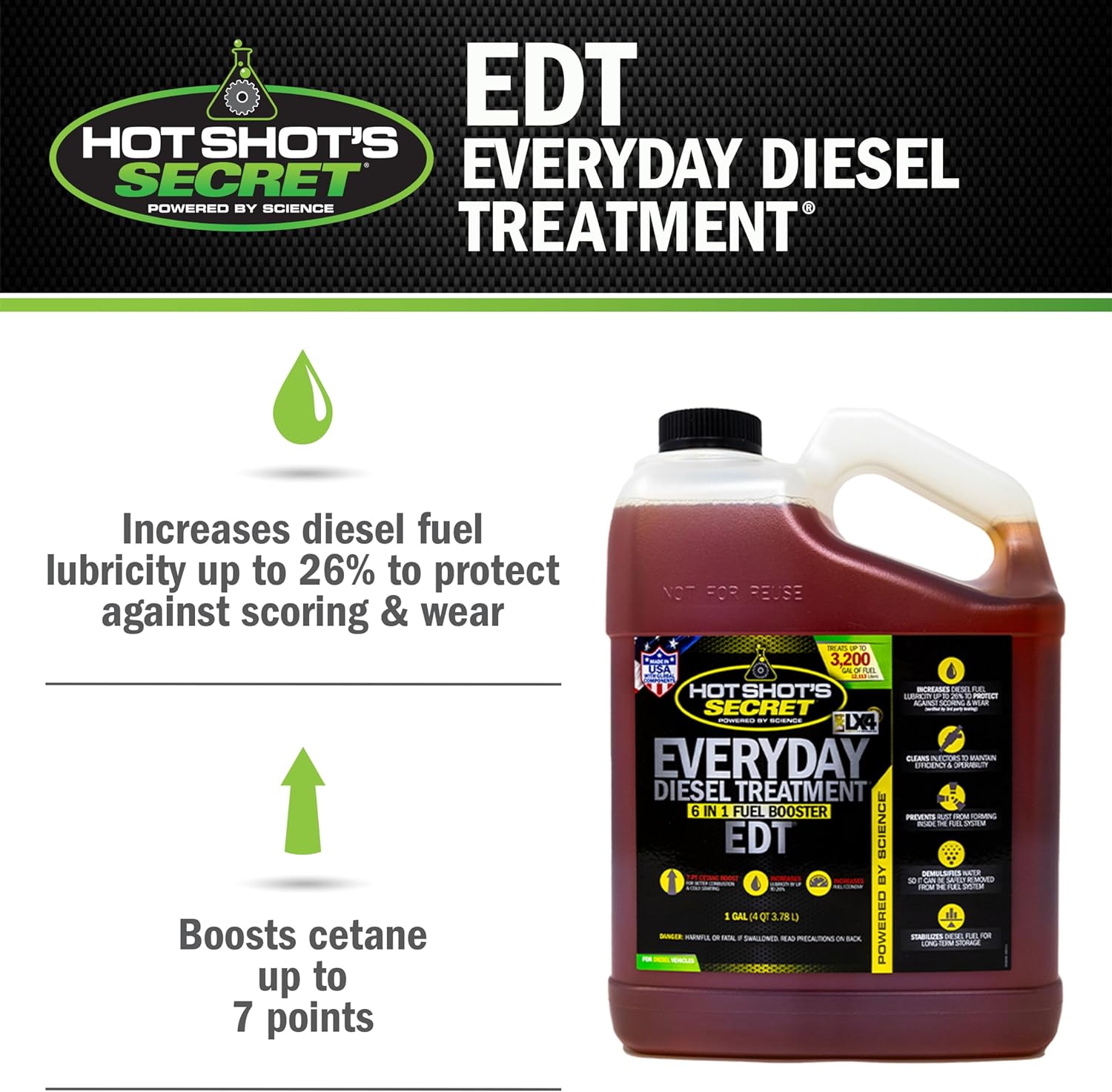 Hot Shot’s Secret Everyday Diesel Treatment EDT 1 Gallon – Treats 3200 Gallons – 6-in-1 Diesel Fuel Additive, Injector and Fuel System Cleaner, Boosts Cetane