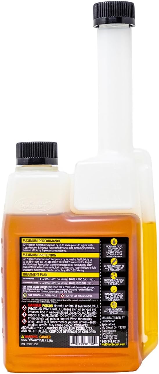 If you simply follow the directions, then this is an excellent product! If you intentionally use too much thinking that more product has to be better, well, then you deserve what you get and very likely you’ll end up killing your expensive fuel injectors or the equally expensive fuel pump as a result. Follow the directions for use exactly and measure out the correct amount of product. This is not going to repair years/decades of neglect and pre-existing internal fuel system corrosion/damage/wear issues, which should go without saying, but I’ve read the low-rated reviews, which are few.Got the 32oz bottle to try, as better value compared to the smaller 16oz bottle/squeeze bottle. The only downside is you really need to follow the directions for use and measure out this type of fuel additive to avoid using too much of it per tank, which is significantly more difficult with the larger bottle size. As others have noted the caps on the larger bottles don’t seal very well, and product is not something you want to keep inside your vehicle (or anywhere enclosed really) unless you bag it and ensure it cannot fall over. Failure to follow the product directions (just pouring it in freely) can result in damage to the very expensive injectors and fuel pump, etc., which is also true of other branded diesel fuel additives as well.Follow the directions and you will very quickly feel the difference in throttle response compared to pump diesel. I use the top-tier diesel fuel and supplement with this product. I get much lower running noise, better fuel economy, less DPF regenerations, and significantly better throttle response. The driving ‘fun factor’ alone is worth the price of this product, but I actually buy it to protect my aging HPFP and original injectors in my ’10 Audi Q7 TDI…those bits are kinda pricey to replace. I used Liqui Moly products prior, and those are great too, but more expensive, so now I’m on Hotshot’s EDT, and my TDI loves it. 🙂