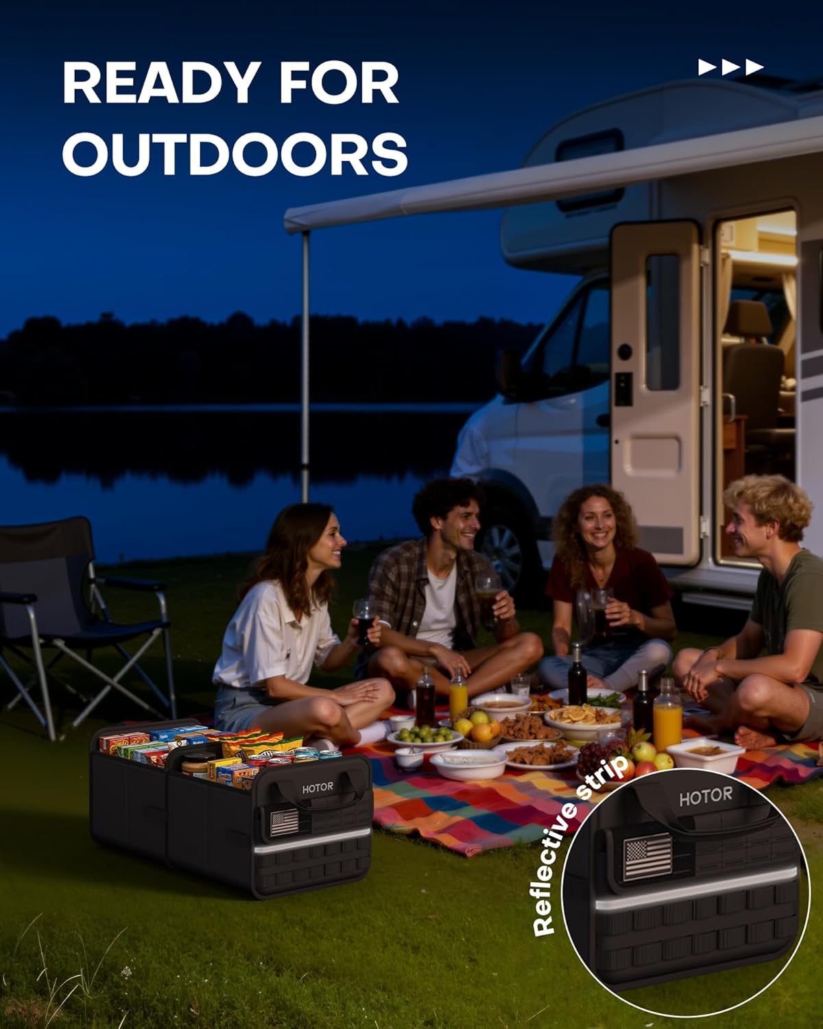 EASY CARRYING FOR ALL-SCENE USE: Featuring sturdy handles on both sides, this portable car trunk organizer is easy to carry between car, garage, and home. Whether you’re loading groceries, packing for a camping trip, or organizing your SUV for daily errands, HOTOR’s trunk organizer delivers both flexibility and reliability. From indoor tidiness to outdoor readiness—it’s built to handle it all.