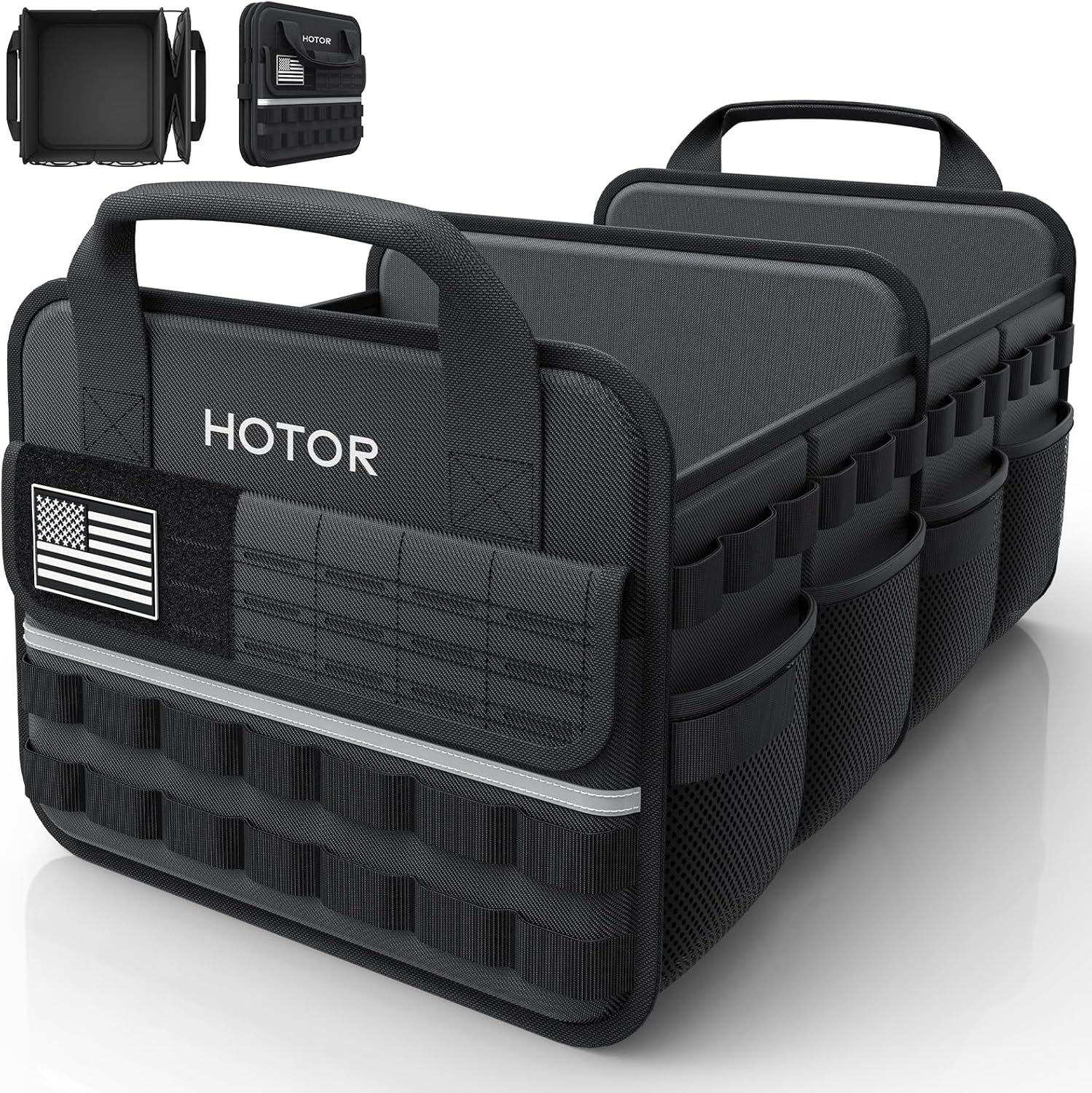 HOTOR Tactical Car Trunk Organizer – Foldable Trunk Organizer for SUV with Front MOLLE Pocket & Reflective Strips, Essential Car Accessories for Tools & Outdoor Storage, 12.8″ x 21.7″ x 11.0″, Black