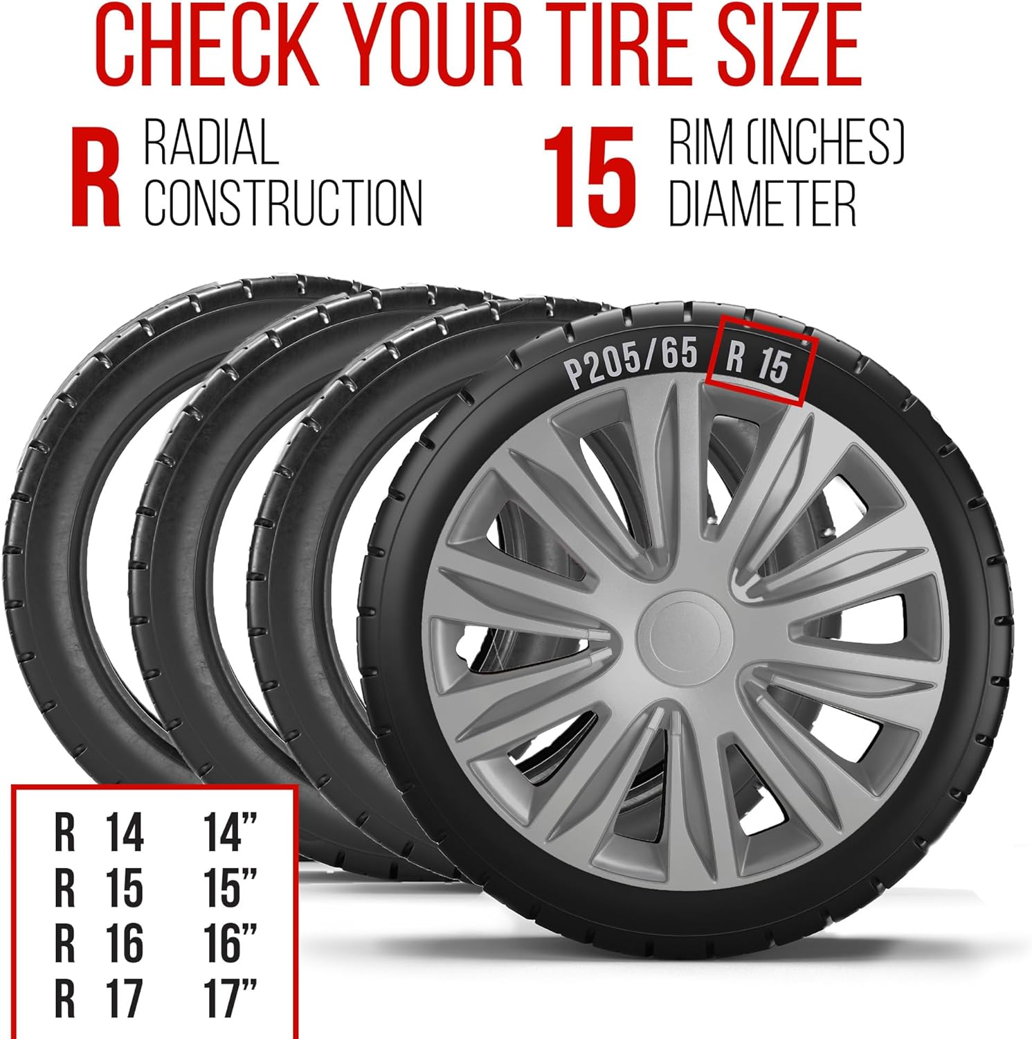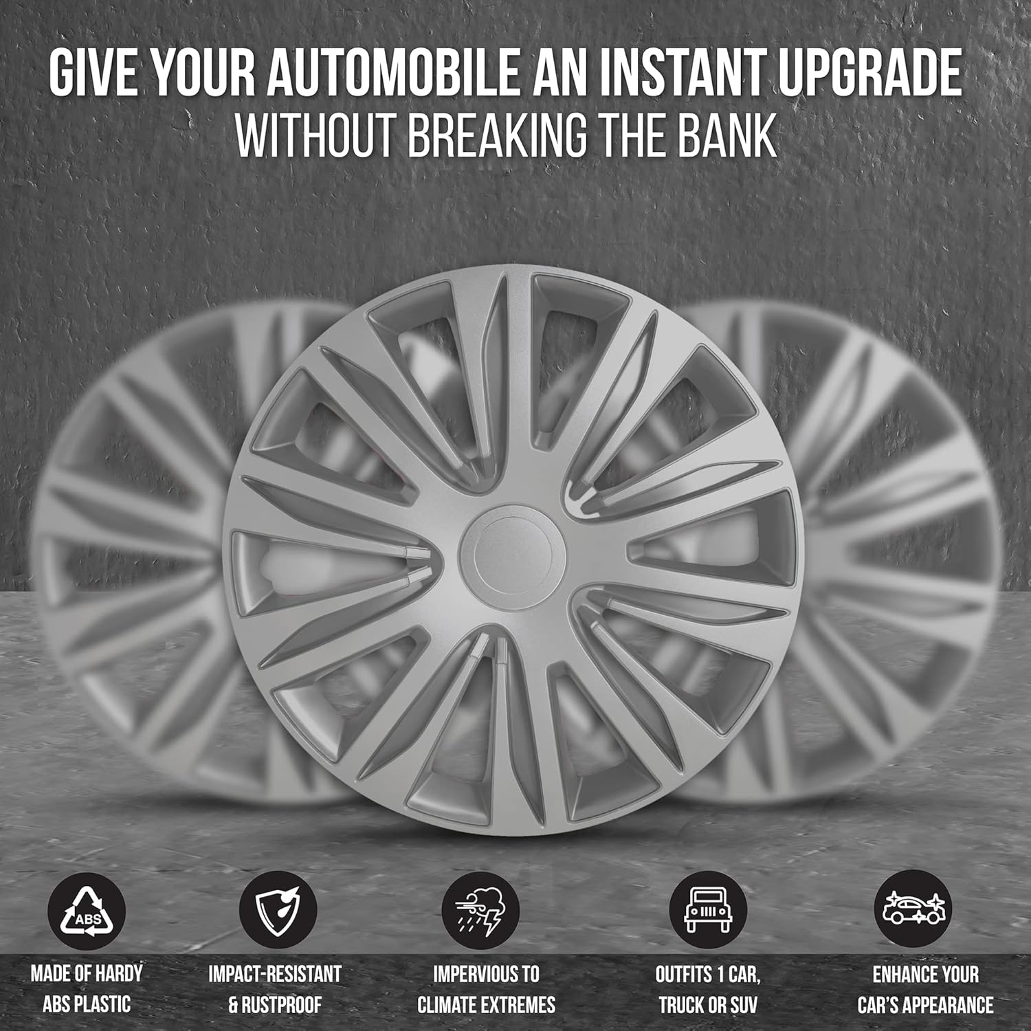 CUSTOMIZE YOUR CAR with luxurious looking hubcaps wheel covers for 15-inch car rims. This set of 4 hub caps in 1-tone silver gives your automobile an instant upgrade without breaking the bank.