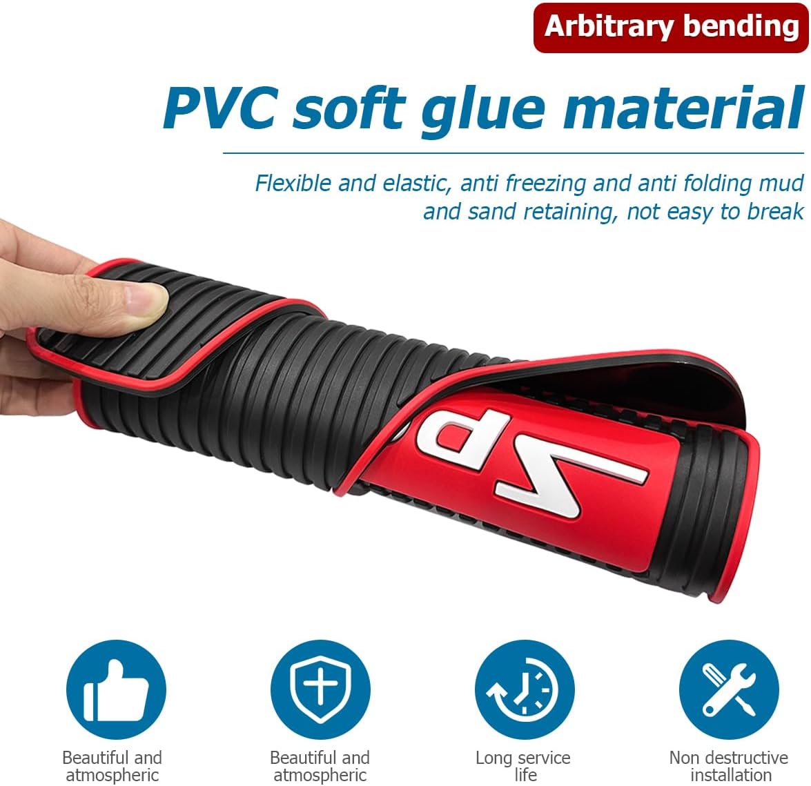 High Grade Material: This car mudguard is made of rubber, which offers excellent flexibility and is unlikely to break during daily use. It is also highly wear-resistant, maintaining its condition even when frequently exposed to sand, stones, and other hard objects on rough roads. Additionally, the rubber material is highly durable, performing reliably in a variety of complex situations, withstanding collisions, and remaining intact even after prolonged use.