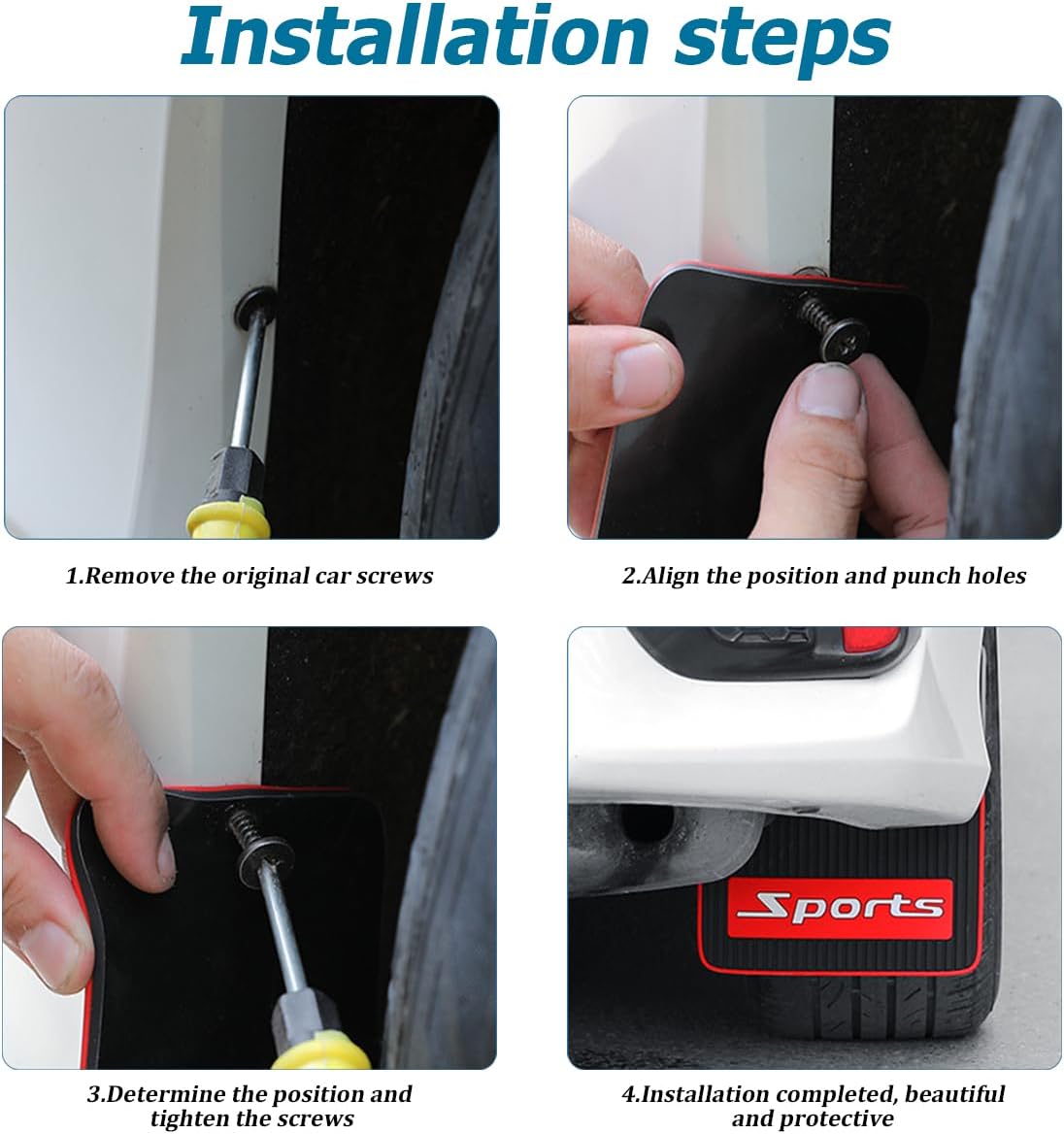 Package Include: 4pcs car mudguards, 12pcs screws, 1pc screwdriver, 1pc hole puncher