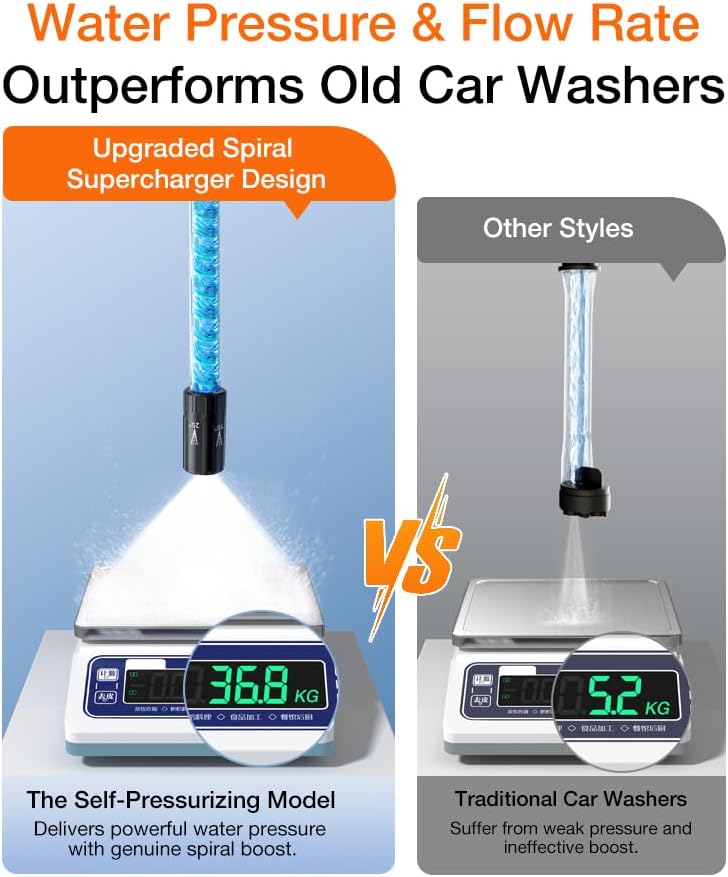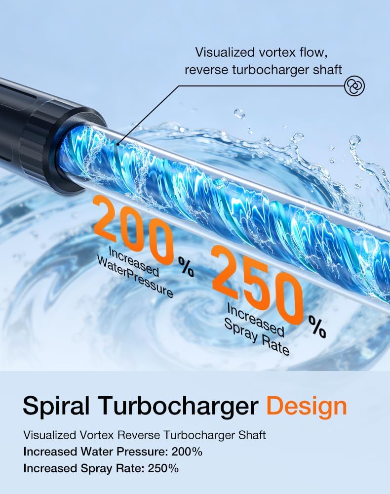 1800 PSI Powerful Cordless Cleaning:Experience the ultimate cordless pressure washer with 1800 PSI of power. Our innovative spiral turbo nozzle blasts away tough dirt and grime from cars, patios, and driveways. Enjoy total freedom with no cords or heavy units—cleaning is now effortless and truly wireless.