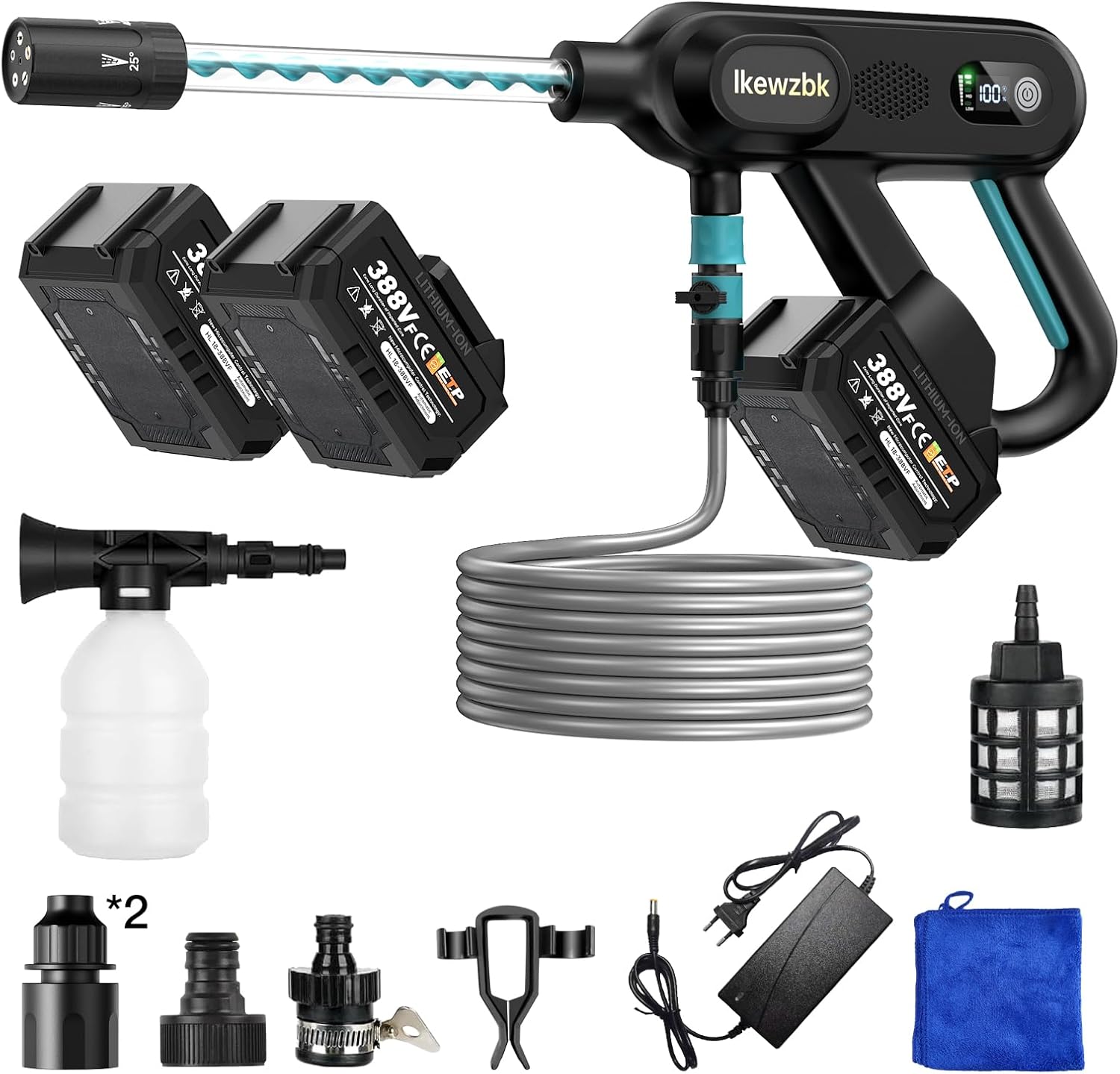 I’m extremely happy with this Ikewzbk Cordless Pressure Washer. For a portable, battery-powered unit, the power is impressive — it easily handles car washes, patio cleaning, and even dirty driveways. The 1800 PSI is more than enough for everyday home use.The two batteries are a huge plus. I can finish a full job without worrying about running out of power, and the swap is quick. Charging is simple and the batteries last longer than expected.The 5-in-1 nozzle is super convenient. Switching spray modes makes it easy to go from gentle rinsing to strong cleaning without changing attachments. The three power levels also help control water and battery use.Setup was straightforward right out of the case, and everything feels well organized and portable. I love the foam bottle for car washing — it makes detailing much easier.Overall, this is a great buy for anyone who wants a lightweight, cordless, and powerful pressure washer. Perfect for homeowners and car lovers. Highly recommend! 💪