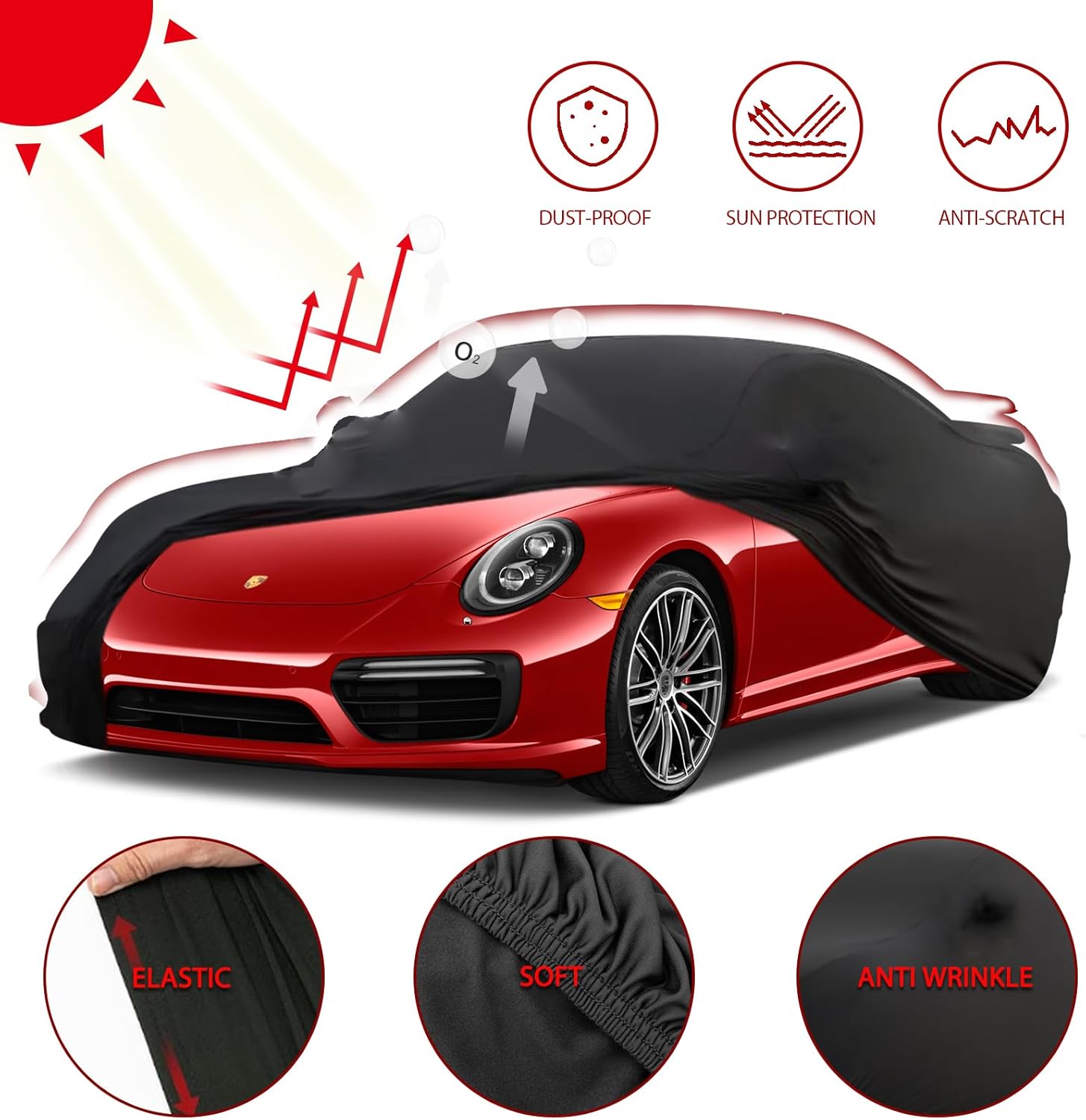 BREATHABLE & WRINKLE RESISTANCE: Stretch satin material allows your Porsche 911 to still breathe to ensure it won’t get moisture buildup when it’s in indoor storage, not get mold.