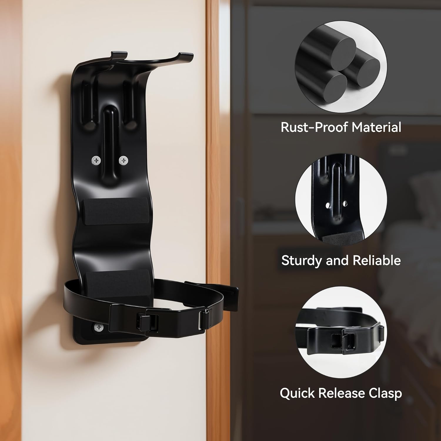 ▶ Quick release clasp: This fire extinguisher wall mount holder comes with a quick release clasp.