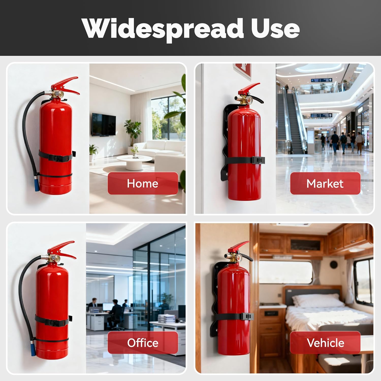 Widely used: Our fire extinguishers metal bracket can be used in homes, warehouses, offices, shops, factories, cars, trucks, vehicle, ships, etc, to ensure your safety.