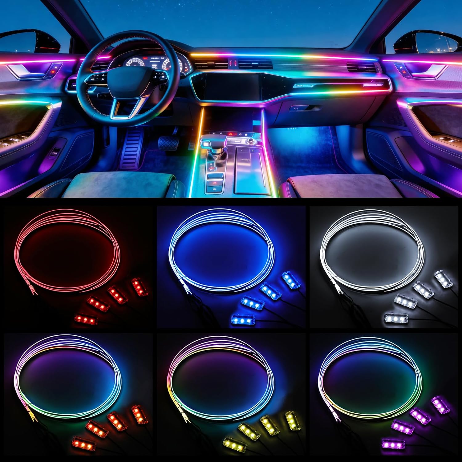 【Dynamic Dreamcolor Chasing】The car LED light upgraded built-in IC chip and each LED can be addressed. In color chasing mode light flowing, chasing, bouncing, dancing, flashing, giving you an amazing visual experience.you can also enjoy a vast spectrum of 16 million vibrant colors and multiple preset patterns to Create a truly immersive in-car atmosphere, bringing you more driving fun.