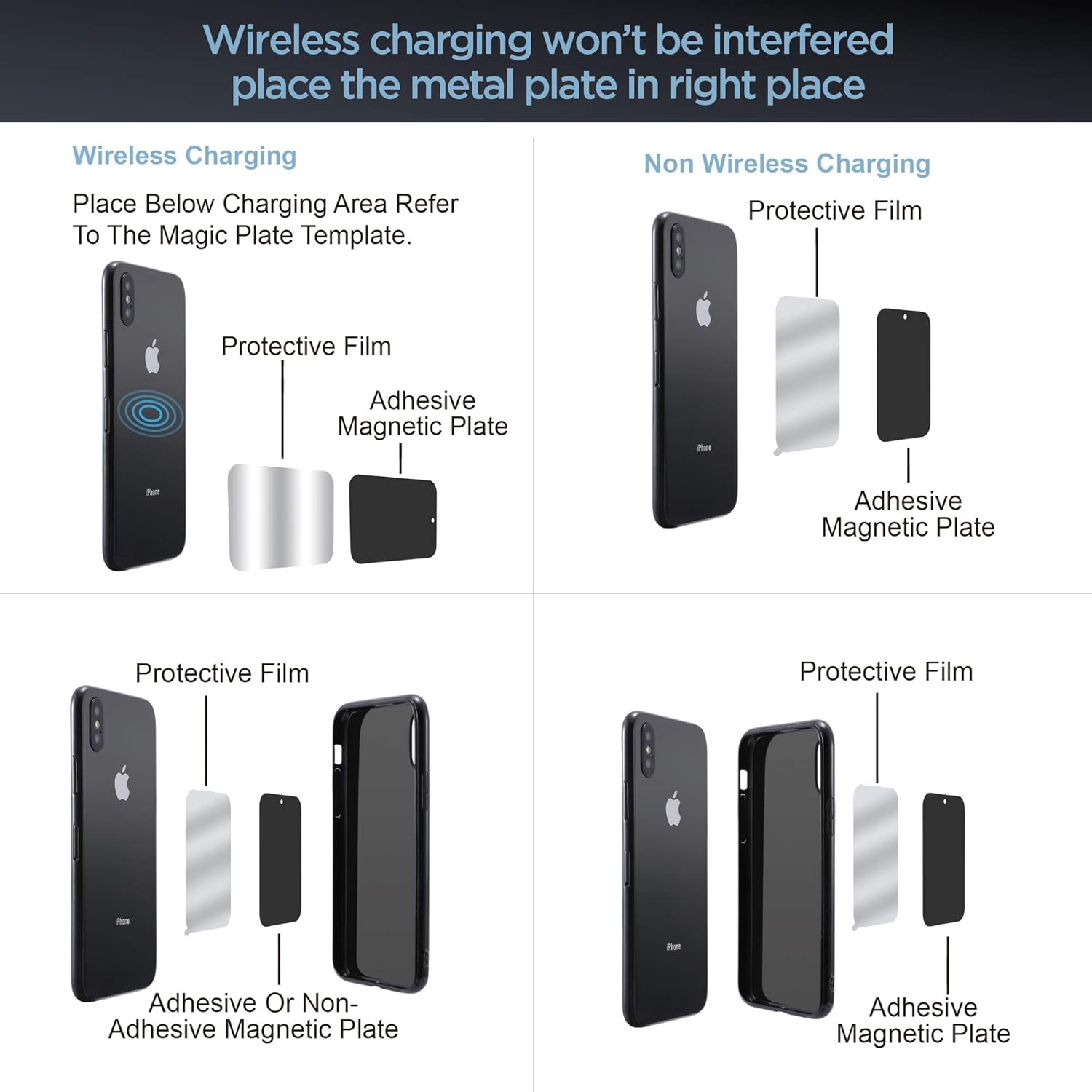 【Bonus 4 Metal Plates & Protective Films Included】 Comes with 4 bonus metal plates (2 round + 2 rectangular, or 4 rectangular randomly). Use the rectangular plates for heavier or larger devices for maximum stability. Perfect compatible with iPhone, Samsung Galaxy, Google Pixel, and all smartphones—ready to use right out of the box!
