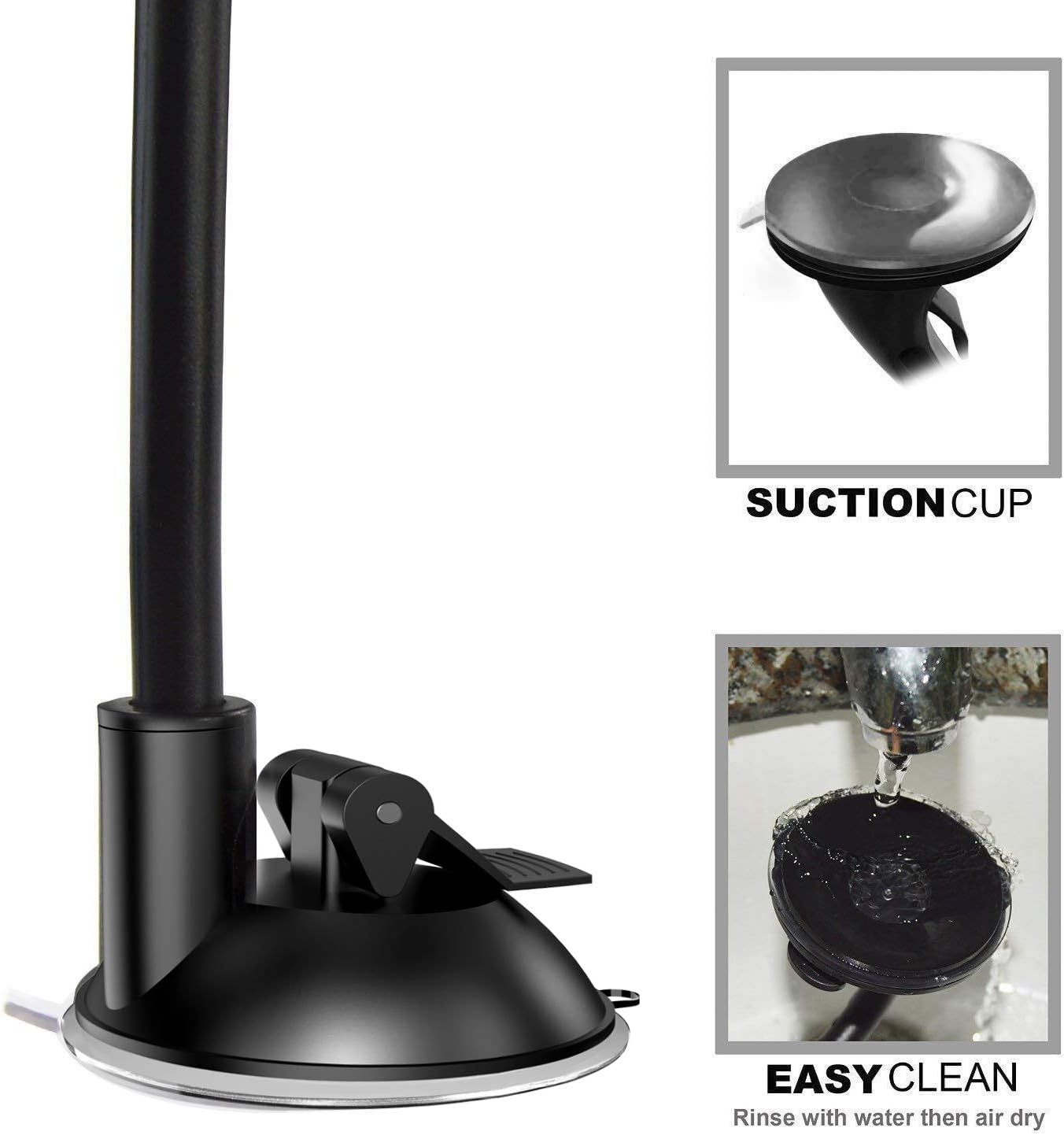 Adjustable Durable Arm:WithThe vacuum suction cup uses stronger better spring lock inside which won’t break. It will stick tighter to the windshield.Full 360 Degree Rotation with a adjustable clamp head, you can adjust your phone for good viewing.