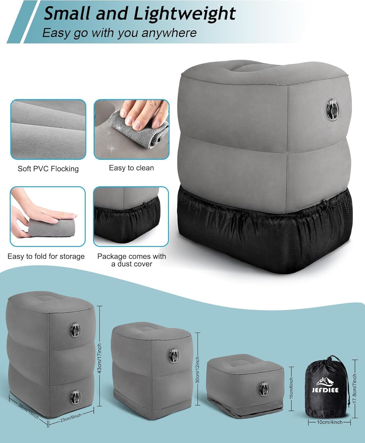 JefDiee Inflatable Travel Foot Rest Pillow – Elevate Your Travel Comfort
