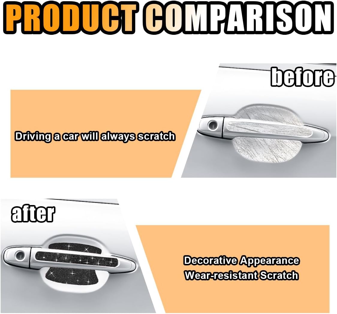 【Widely Applications】:This door handle rhinestone sticker can protect the door handle and prevent scratches; its shiny rhinestones have a reflective effect at night, which can serve as a reminder to drivers around you, making your car safer when driving at night.